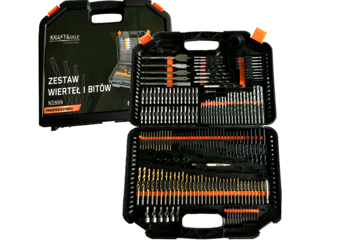 Un set de scule excepțional de cuprinzător de la Kraft & Dele, KD999. Sculele se caracterizează printr-o manoperă solidă, materiale durabile și o geantă de transport practică care poate conține fiecare sculă. Setul de burghiu și biți este fabricat din materiale de cea mai înaltă calitate, inclusiv oțel crom-vanadiu CrV. Biții metalici sunt fabricați din oțel rapid HSS.