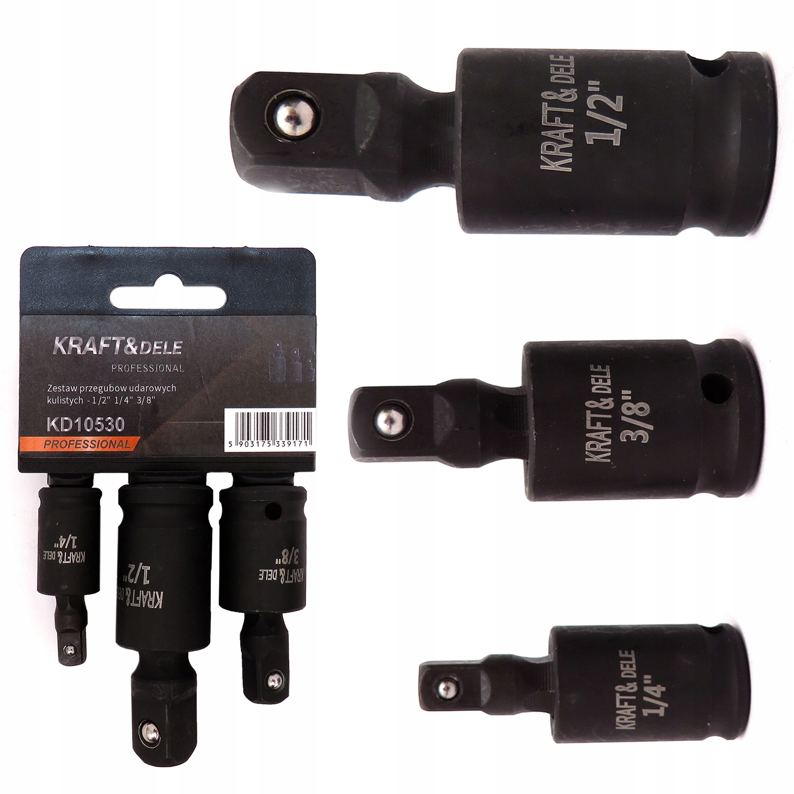 COMPOZIȚIA PRODUSULUI ✅ Articulații sferice de impact: 1/4", 3/8", 1/2" ✅ Ambalaj original Kraft&Dele ✅ Garanție