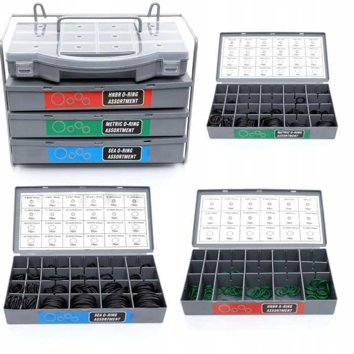 • Set de inele O rezistente la ulei 900 buc. KD10505: • Sortator gol • Set de inele O HNBR • Set de inele O metrice • Set de inele O în inch • Chitanță sau factură.