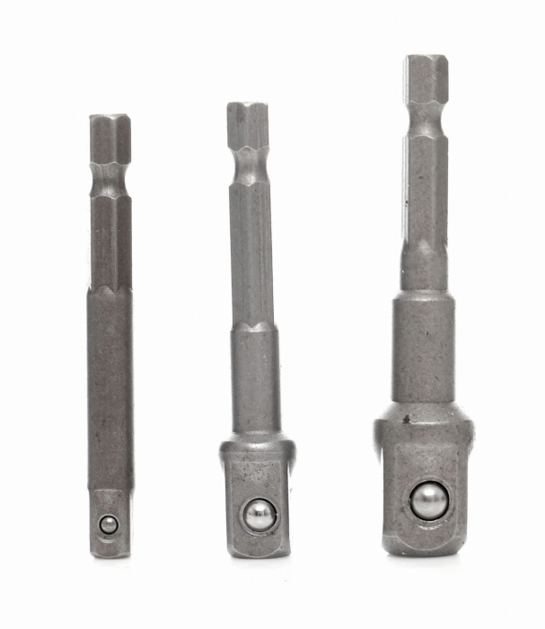 Un set de reduceri specializate și adaptoare pentru șurubelnițe. Reducerile permit șurubelniței să funcționeze cu prize. Elementele setului sunt realizate din oțel de scule, ceea ce garantează durabilitatea și durata lungă de viață a acestora.