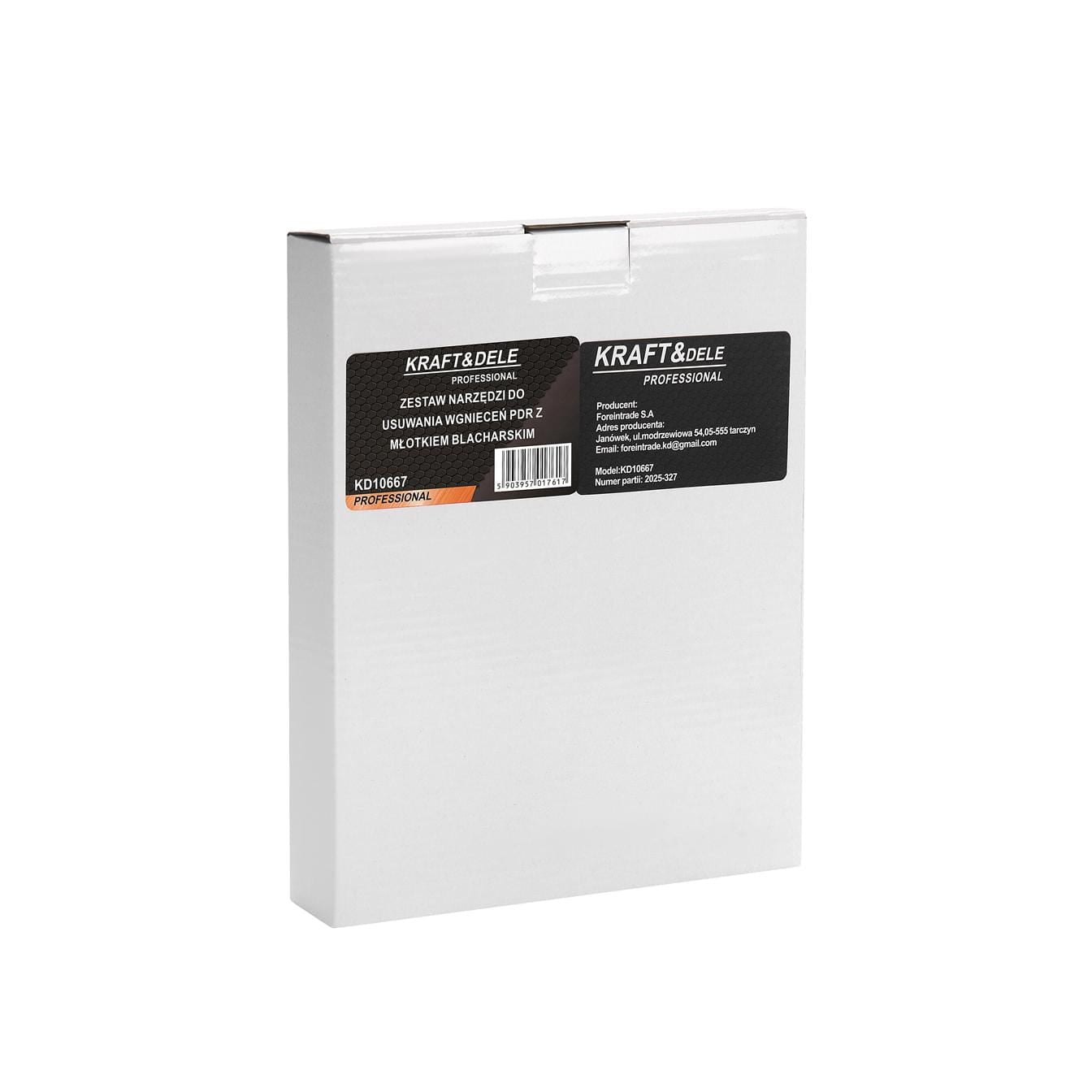 KIT DE ÎNDOITARE A ZDĂNĂTURILOR PDR CU CIOCAN DIN TABLĂ KD10667 Kitul KD10667 este un instrument profesional pentru îndepărtarea loviturilor de pe caroseriile mașinilor folosind metoda PDR (Paintless Dent Repair - Repararea Loviturilor Fără Vopsea). Kitul include un ciocan pentru caroserie, un set de ciocane din nailon și un ciocan cu 9 vârfuri interschimbabile, care permit alinierea precisă a suprafețelor caroseriei fără a deteriora vopseaua. Datorită materialelor rezistente la zgârieturi, componentele setului asigură repararea eficientă și sigură a loviturilor minore, economisind timp și bani la reparațiile costisitoare ale caroseriei. Vârfurile interschimbabile pot fi atașate fie la ciocan, fie direct la ciocan, sporind versatilitatea și confortul setului. Caracteristicile și compoziția produsului Set profesional de scule pentru îndepărtarea loviturilor folosind metoda PDR.
