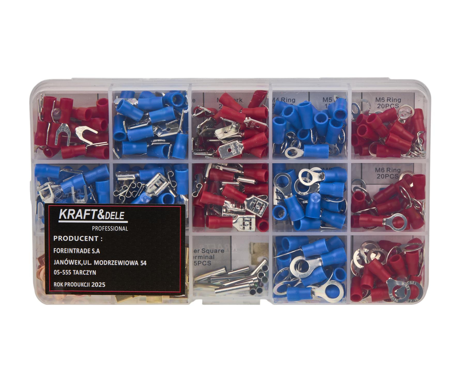 Conectori sertizați izolați de la marca poloneză Kraft&Dele, model KD10488, livrați într-un ambalaj convenabil și solid, care facilitează separarea în tipuri individuale de conectori.