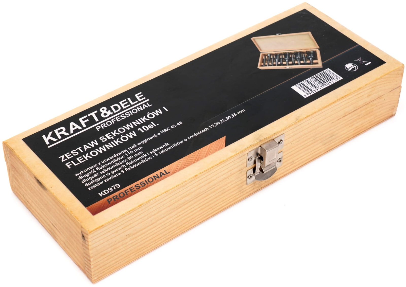 Setul profesional de perforatoare pentru noduri și filete KRAFT&DELE KD979 este un instrument indispensabil pentru lucrările de tâmplărie și dulgherie. Conceput pentru a fi utilizat cu o bormașină de banc sau manuală, setul permite realizarea precisă a găurilor în lemn și materiale pe bază de lemn. Acest set vă permite să tăiați găuri uniforme, să îndepărtați eficient nodurile și alte defecte ale lemnului și chiar să le mascați estetic cu capace. De asemenea, este ideal pentru crearea de caneluri pentru cupele balamalelor. Sculele sunt fabricate din oțel carbon călit cu o duritate de HRC 45-48 și au o suprafață lustruită, asigurând durabilitate și precizie. Întregul set este ambalat într-o cutie robustă din lemn pentru depozitare și transport ușor.
