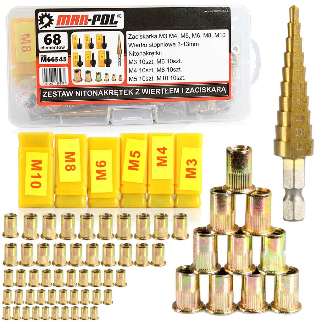 Set piulite nit cu scule nituire M3-M10 68 piese cu valiza (M66545)