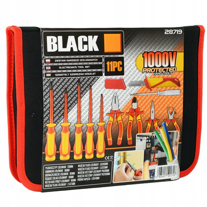 Setul include unelte izolate concepute pentru a funcționa sub tensiune de până la 1000V