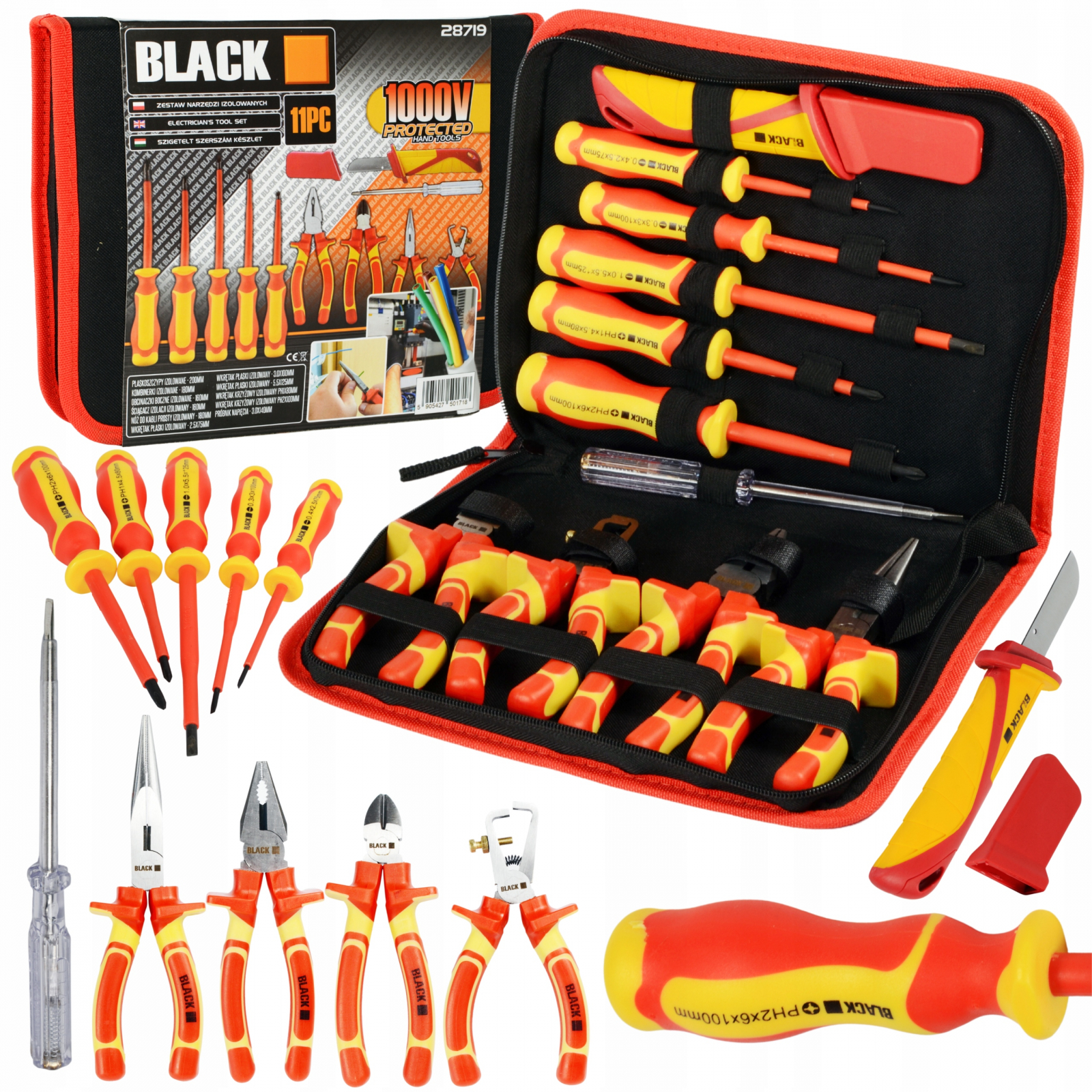 Set scule izolate 1000V clesti surubelnite pentru electricieni 11 piese (28719)