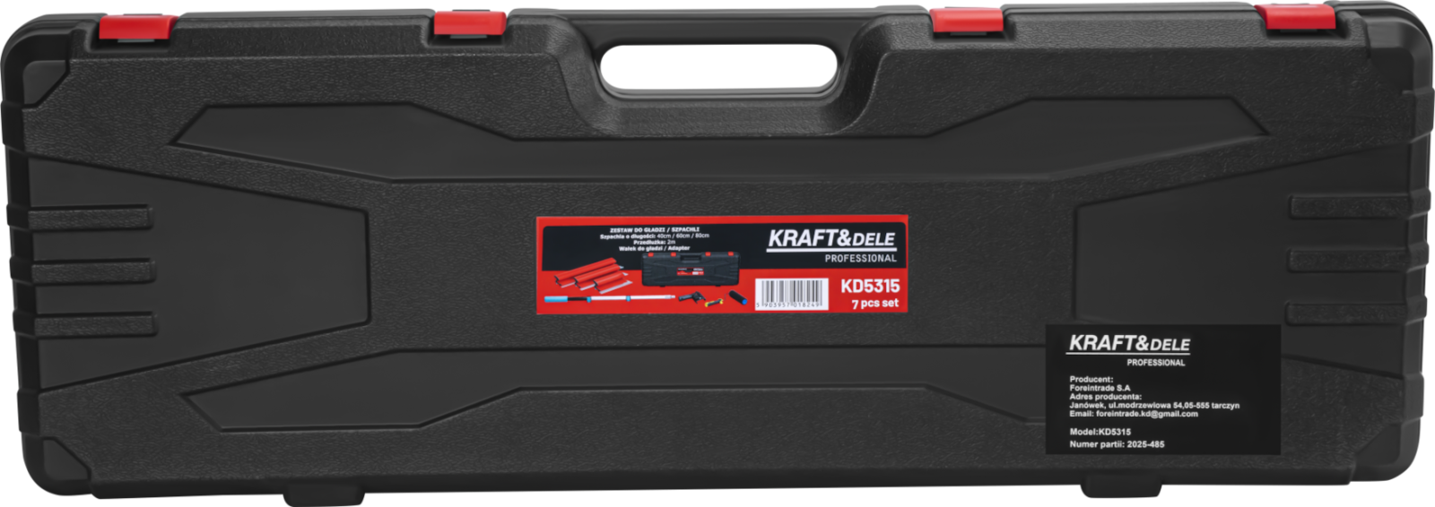 KD5315 este un set complet de scule pentru tencuială și chit de la KRAFT&DELE. Conceput pentru confort și precizie la finisarea pereților și tavanelor, setul dispune de mânere ergonomice, construcție ușoară și componente bine gândite care permit aplicarea rapidă și uniformă a tencuielii, chiar și în zone greu accesibile. Setul KD5315 include chituri de patru dimensiuni, o extensie de 2 metri, o rolă de tencuială și un adaptor pentru lucrul din diferite unghiuri. Extensia facilitează lucrul în încăperi înalte fără a utiliza scări. Spuma moale de la capătul mânerului crește confortul, iar corpul ușor al chitului reduce tensiunea la încheietura mâinii.