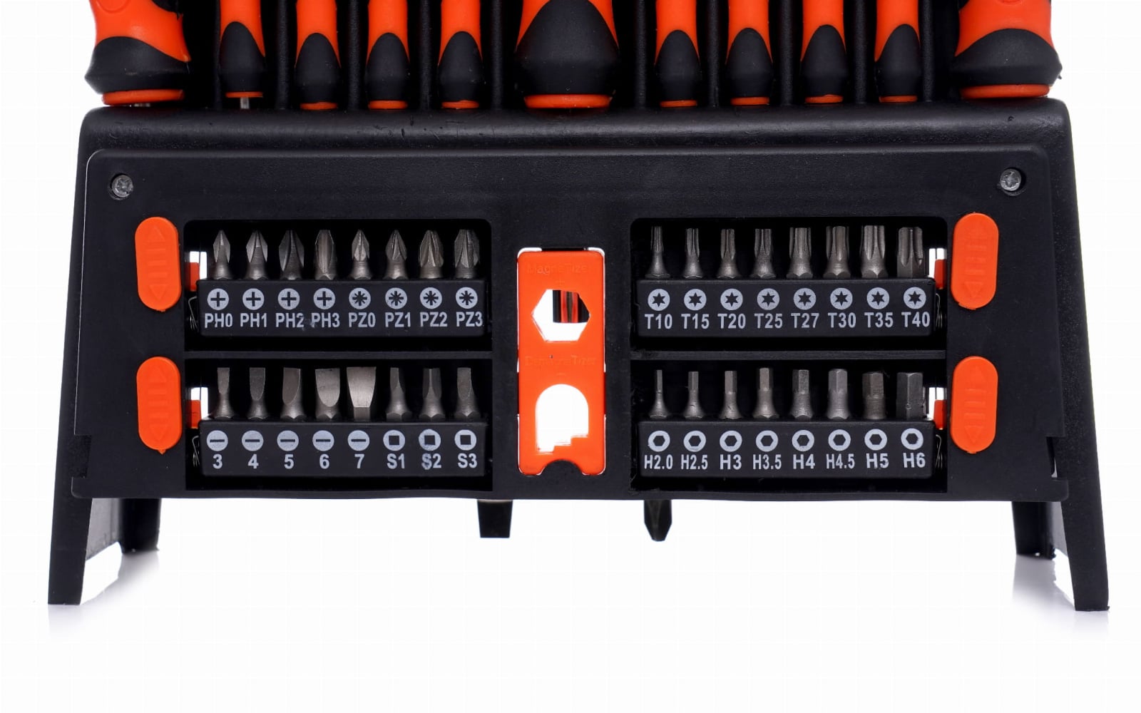 Utilizarea materialelor de înaltă calitate în producția acestor șurubelnițe le prelungește durata de viață. Setul este format din 50 de piese.