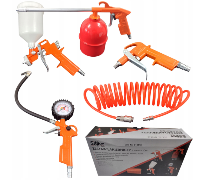 Set vopsire pneumatic 5 piese, pistol pulverizare, pentru compresor si aer comprimat (S10510)