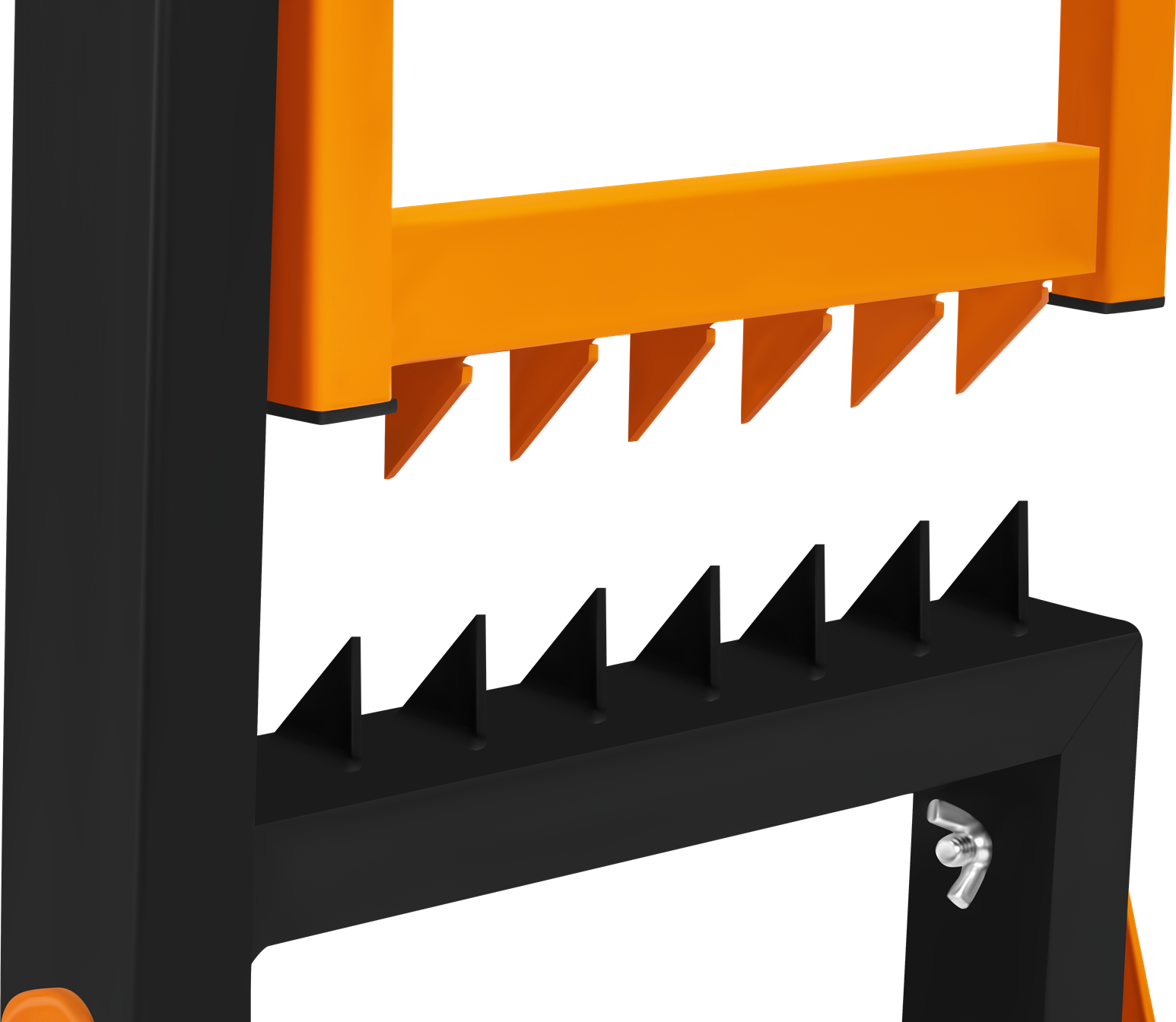 KD3175 este un suport/arborele robust pentru tăierea lemnelor de la KRAFT&DELE, conceput pentru o muncă sigură, confortabilă și ergonomică la pregătirea combustibilului. Construcția sa stabilă și caracteristicile bine gândite îl fac ideal pentru utilizare în grădină, pe teren și pentru proiecte de îmbunătățire a locuinței. Modelul KD3175 este fabricat din oțel durabil, rezistent la intemperii, asigurând o durată lungă de viață chiar și în cazul utilizării intensive. Dinții speciali de stabilizare previn eficient deplasarea lemnului în timpul tăierii, crescând siguranța și precizia. Designul ergonomic permite tăierea în poziție verticală, reducând tensiunea spatelui și îmbunătățind confortul. Designul pliabil facilitează transportul și depozitarea, iar clema reglabilă permite adaptarea suportului la bușteni de diferite diametre.