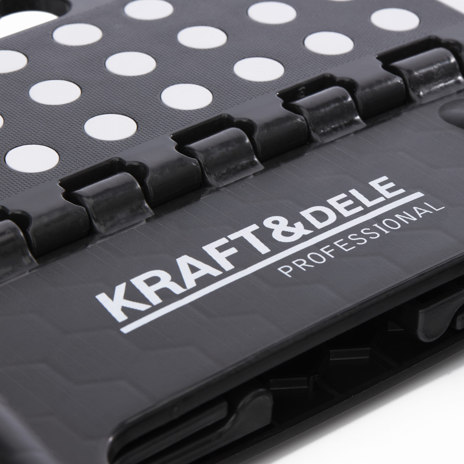 KD10745 este un scaun pliabil versatil de la KRAFT&DELE. Funcționalitatea sa îl face potrivit atât pentru copii, cât și pentru adulți. Ideal ca rampă de lansare pentru a ajunge la obiecte înalte, precum și pentru lucrări de renovare, atelier și grădinărit. Construcția sa robustă din plastic de înaltă calitate asigură stabilitate și siguranță. Scaunul are un șezut antiderapant pentru confort și stabilitate sporite în picioare. Caracteristica sa de pliere permite depozitarea sa într-un format compact, fiind ușor de depozitat acasă, în garaj, atelier sau mașină. Greutatea sa redusă, combinată cu durabilitatea, îl face un instrument practic pentru utilizarea zilnică.