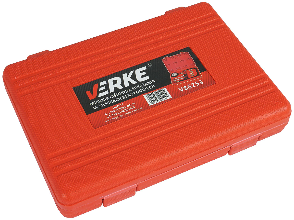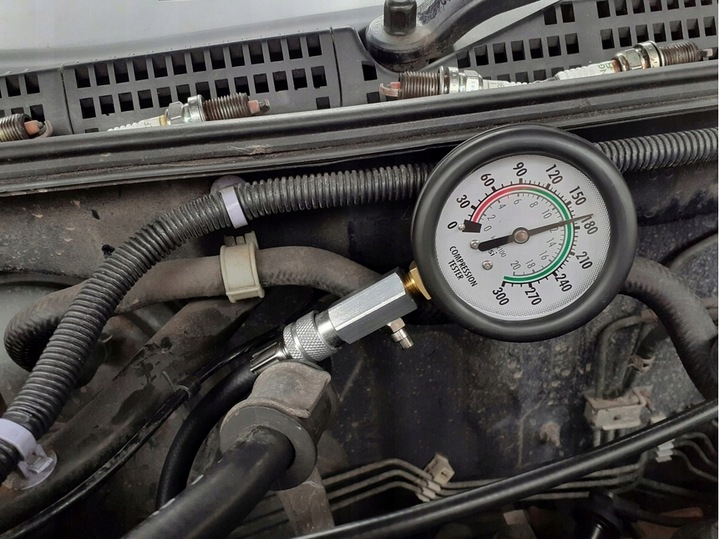 Un tester pentru verificarea presiunii de compresie în cilindrii motoarelor pe benzină, cu accesorii care îi extind capacitățile. Carcasa din plastic include un manometru cu supapă, o extensie dreaptă și unghiulară, un furtun de presiune extensibil și patru adaptoare pentru conectarea la cilindri. Componentele sunt echipate cu cuplaje rapide pentru o instalare rapidă și ușoară. Scop: service auto, testarea presiunii de injecție la motoarele pe benzină. DATE TEHNICE: