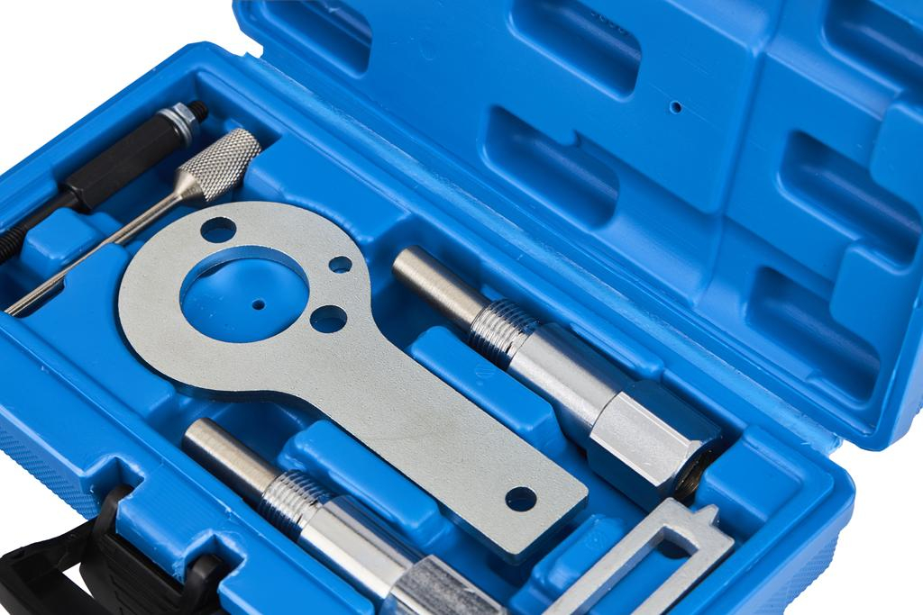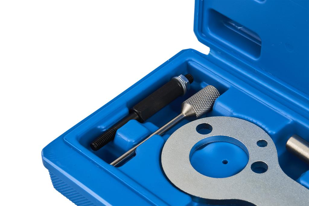 O unealtă profesională de blocare a pinionului arborelui cu came de la Kraft & Dele, model KD12526 . Acest kit vă permite să blocați angrenajele de distribuție în poziția de service în timpul înlocuirii curelei de distribuție. Forma specială a încuietorilor permite reglarea precisă a punctelor de sincronizare a aprinderii. Încuietorile imobilizează angrenajul de distribuție, pinionul arborelui cotit și rola întinzătorului curelei. Recomandat pentru utilizare profesională în atelierele specializate de reparații auto. Întregul kit vine într-o geantă de transport practică.
