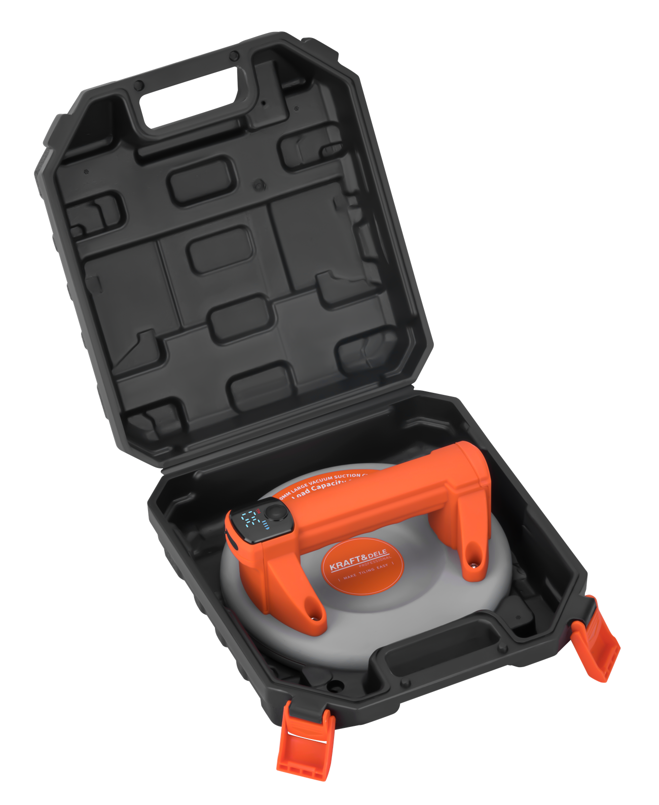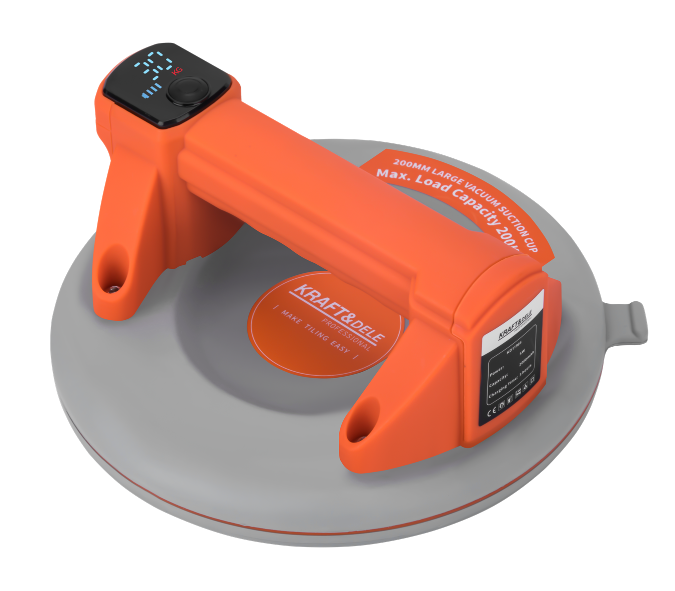 VENTUZĂ BATERIE 200MM 200KG KD11964 KD11964 este o ventuză compactă și puternică, alimentată de baterii, cu un diametru de 200 mm (8 inci) și o capacitate maximă de încărcare de până la 200 kg. Concepută pentru transportul în siguranță al obiectelor cu suprafețe netede, cum ar fi sticlă, metal și plăci de piatră. Datorită unei baterii de 2000 mAh și alimentării prin intermediul unui port USB-C modern, ventuza garantează mobilitate, confort și funcționare fiabilă în atelier și pe șantier. Construcția sa robustă asigură o prindere sigură și siguranță la mutarea materialelor grele.