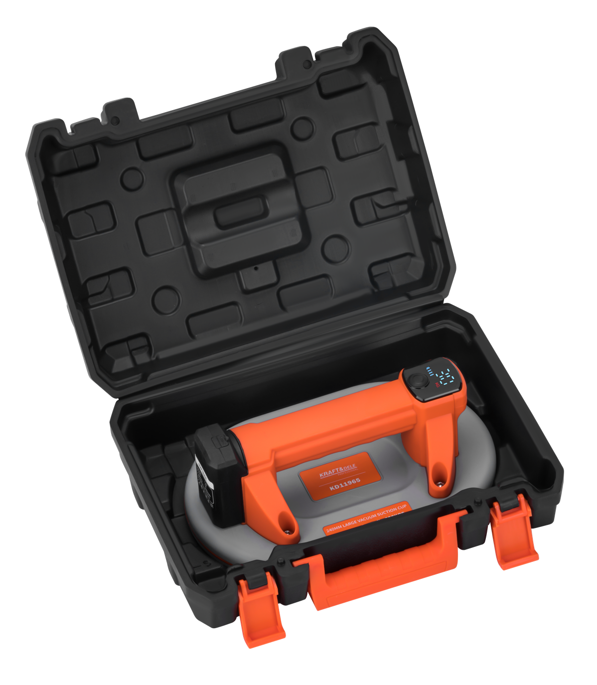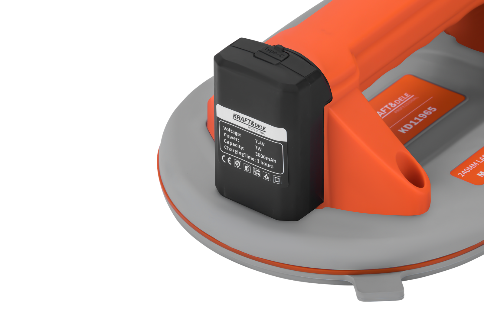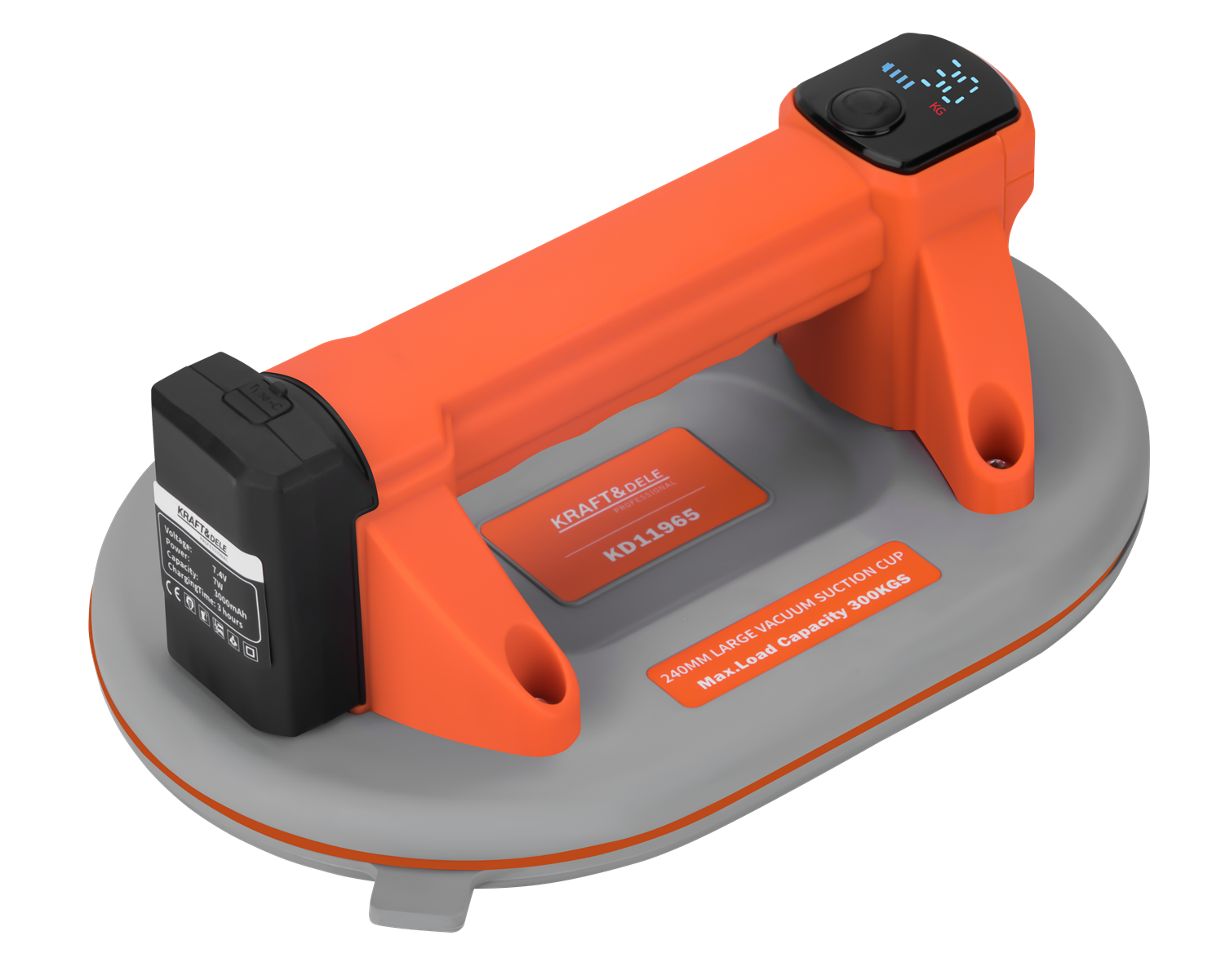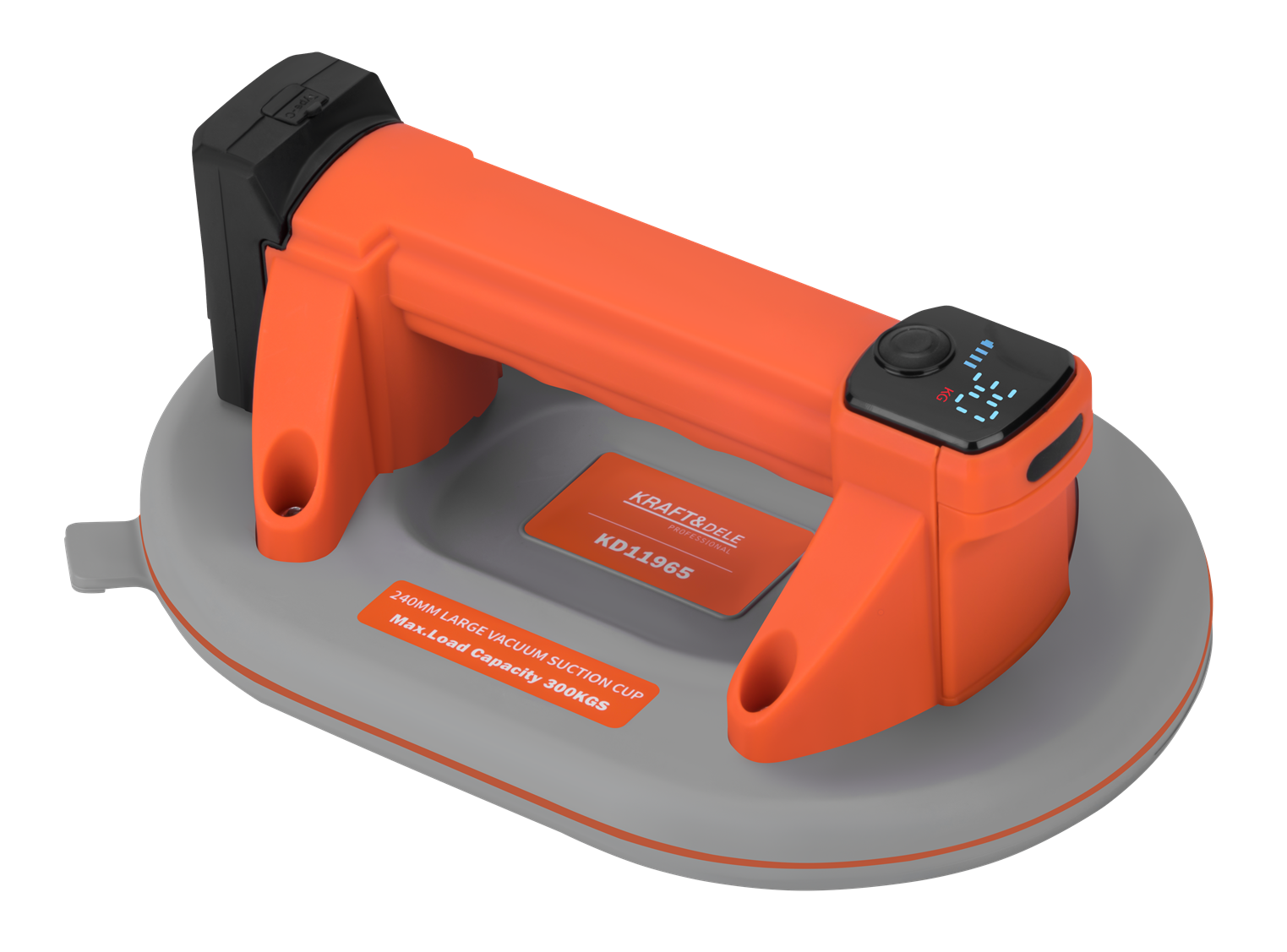 VENTUZĂ BATERIE 240MM 300KG KD11965 KD11965 este o ventuză profesională, alimentată cu baterii, cu un diametru de 240 mm și o capacitate maximă de încărcare de până la 300 kg. Dispozitivul a fost conceput pentru manipularea sigură și confortabilă a suprafețelor netede, cum ar fi sticla, plăcile de piatră și foile de metal. Datorită bateriei încorporate de 3000 mAh și a sursei de alimentare moderne USB-C, ventuza asigură o funcționare îndelungată cu o singură încărcare, iar designul său ergonomic crește confortul și siguranța utilizării în toate condițiile.