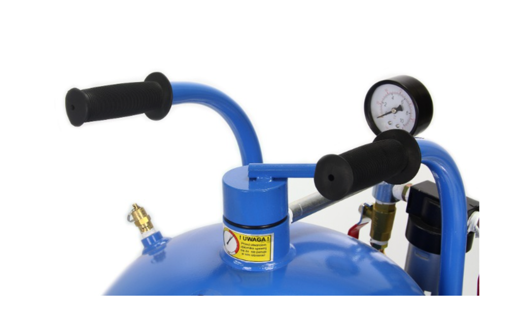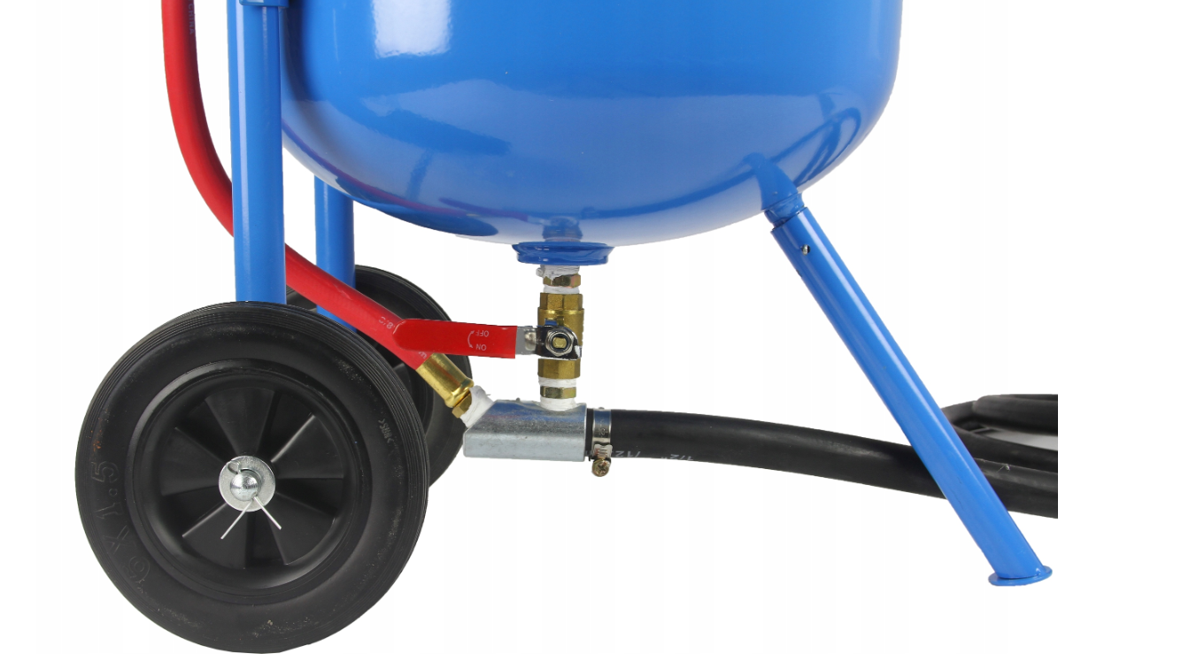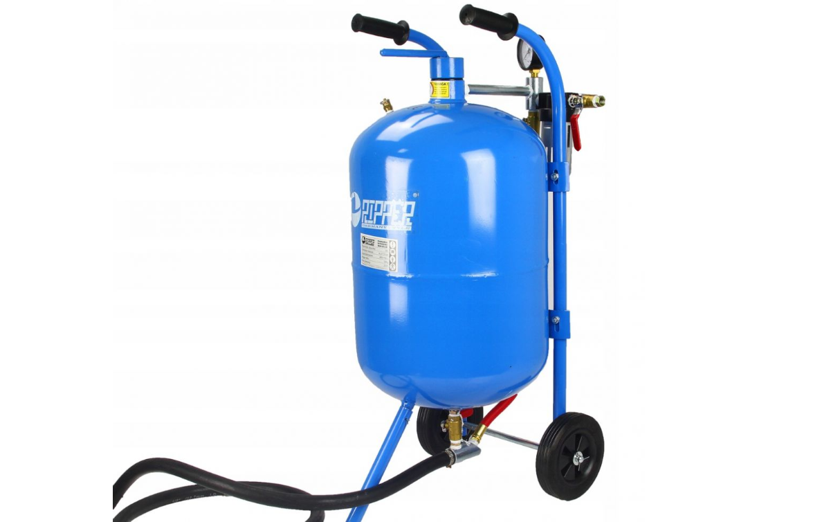 Aparat de sablat mobil cu o capacitate de 76 de litri. Ideal pentru renovare și întreținere, lucrări în spații de depozitare. Echipat cu duze și pistoale de sablare, supapă de închidere, manometru, furtun de șlefuit, pâlnie pentru umplerea rezervorului și o mască de protecție cu lentilă din plexiglas.