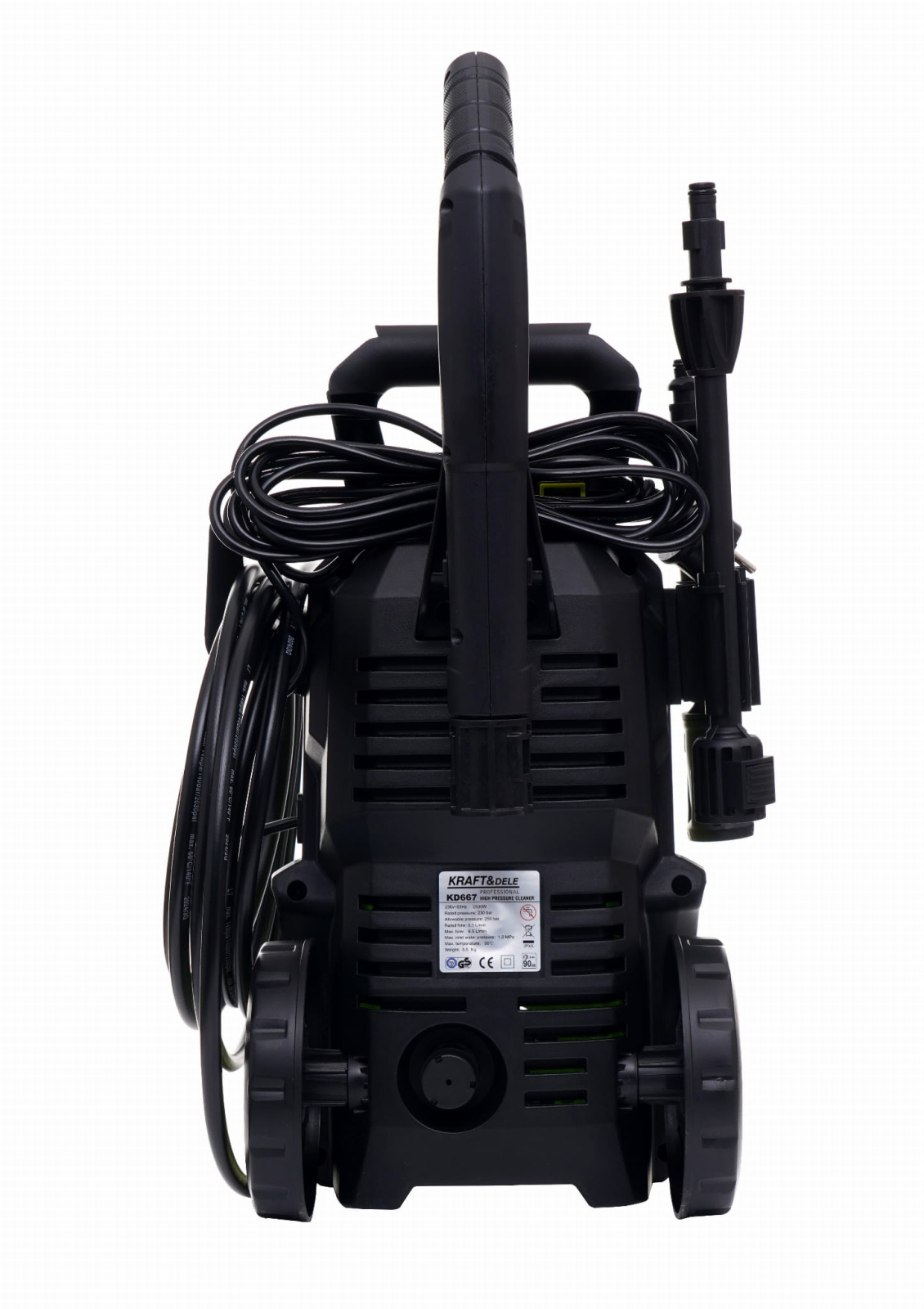 Aparatul de spălat cu înaltă presiune Kraft & Dele KD667 este un instrument versatil de curățare și întreținere. Este perfect pentru curățarea fațadelor, teraselor, mobilierului de grădină, mașinilor și a multor alte suprafețe. Designul său ușor și cablul de alimentare convenabil asigură o funcționare confortabilă. Dispozitivul este echipat cu o oprire automată a motorului (funcția Full Auto-Stop), care pornește și oprește pompa atunci când se acționează trăgaciul pistolului. Acest lucru economisește apă și energie, protejează pompa și mediul înconjurător.