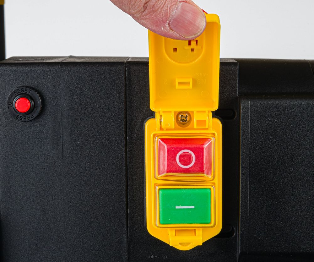 Reglarea grosimii cu ajutorul unui buton: Reglați cu ușurință grosimea de rindeluire cu ajutorul unui buton ergonomic, facilitând reglarea mașinii la o anumită grosime a materialului.