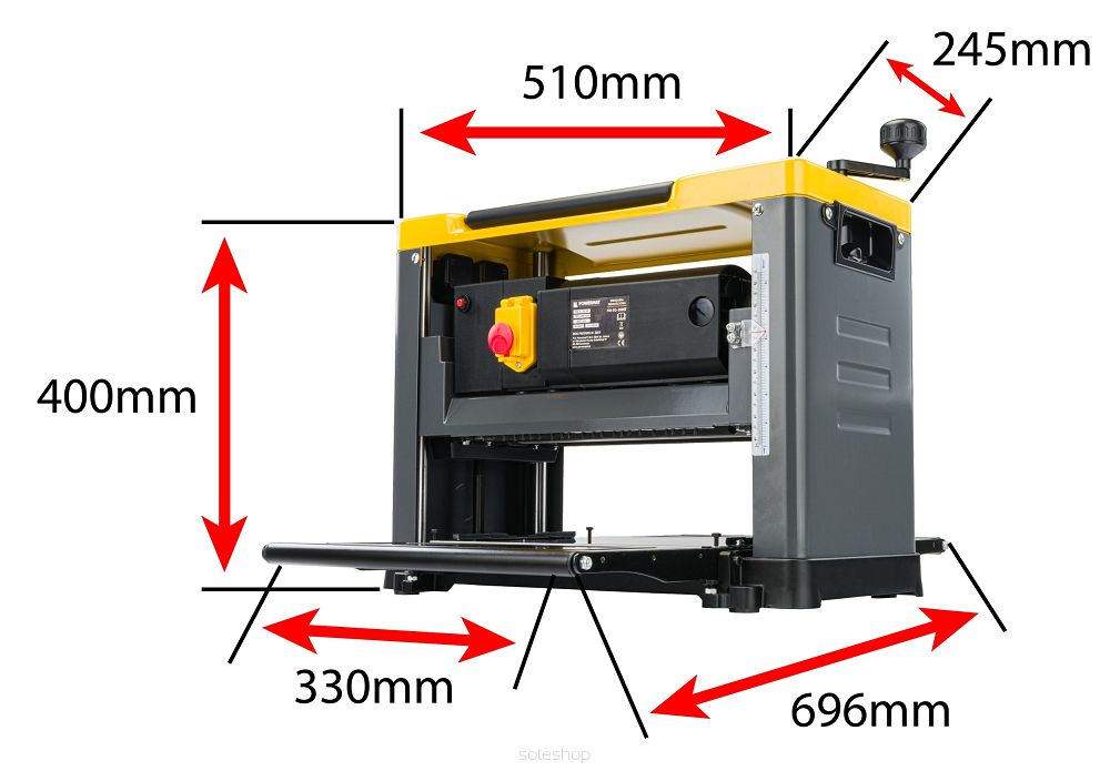 O rindea cu grosime echipata cu 2 lame de taiere de mare viteza HSS, cu masa de 33 cm latime si brate cu lungimea maxima de 696 mm, are multe avantaje, posibilitati si caracteristici care o fac o unealta versatila in prelucrarea lemnului.