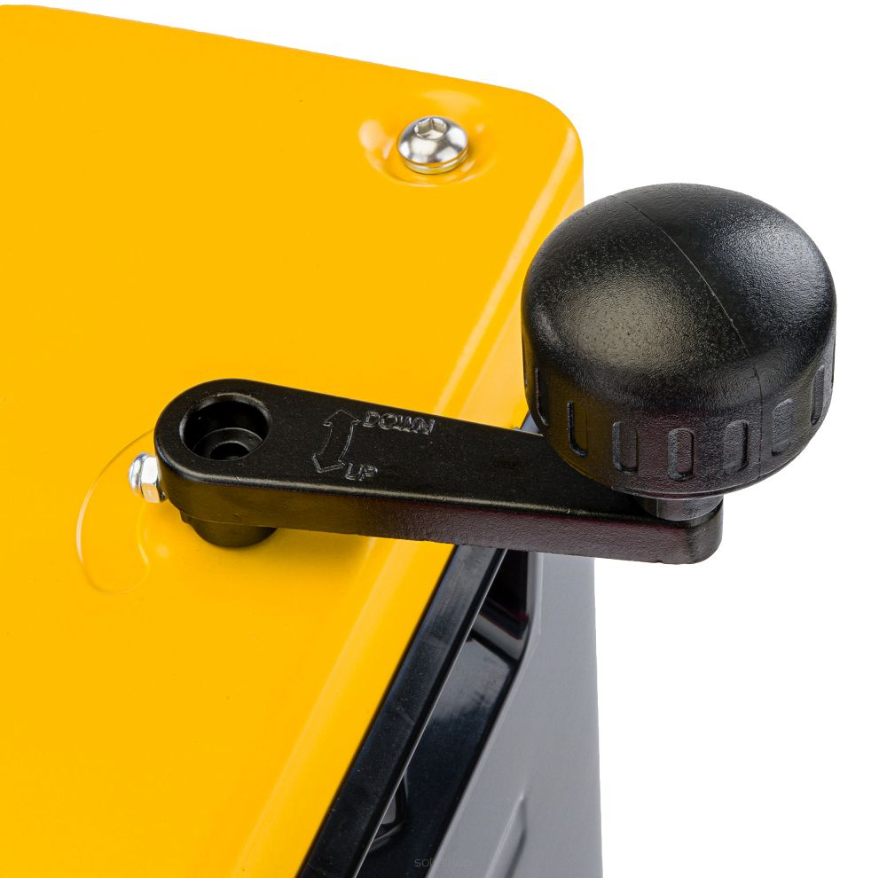 O manivela precisă care vă permite să setați poziția de prelucrare a materialului cu o precizie milimetrică completă.