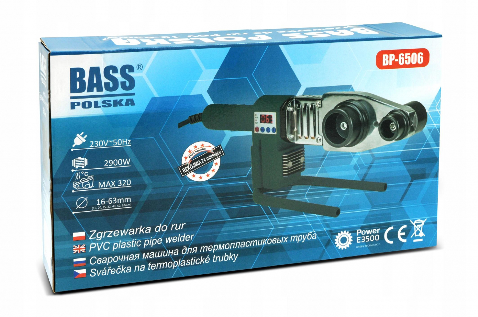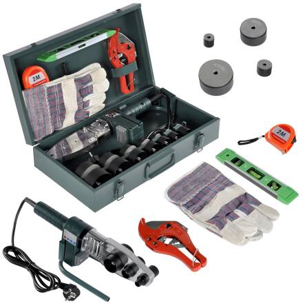 · Putere: 2900 W · Regulator electronic de temperatură cu termostat: Da · Tensiune: 230V · Reglarea temperaturii: 0-320 grade C · Matrici de încălzire: 16, 20, 25, 32, 40, 50, 63 mm INCLUS · Sudor · Foarfece · Mănuși · Nivel de spirit · Şurubelniţă · cană de măsurare de 2 m · Stand · Cheie hexagonală lungă · Cheie hexagonală scurtă