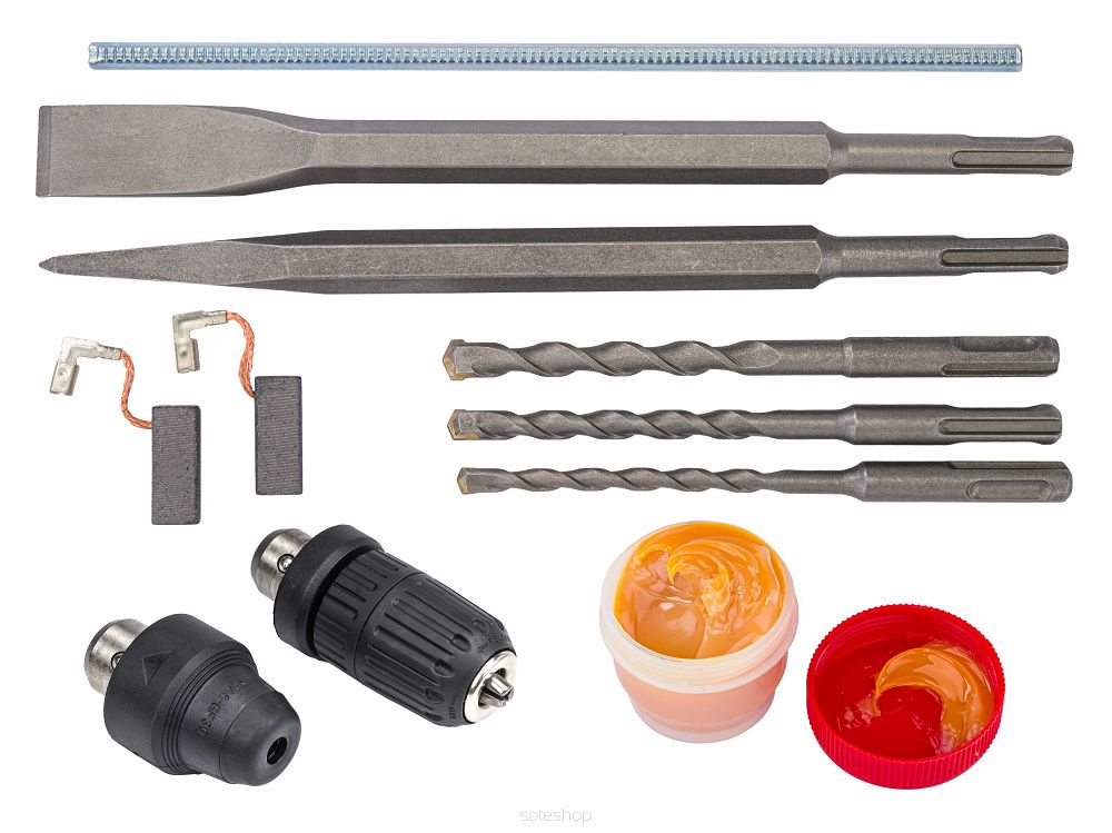 Suportul SDS+ vă permite să lucrați cu burghie și burghie dedicate pentru zidărie/beton pentru beton, precum și cu malaxoare.