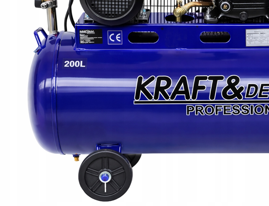 Compresor de ulei 200L albastru KD4059 KD4059 este un compresor puternic fără ulei de la KRAFT&DELE, cu o capacitate mare a rezervorului de 200 litri, conceput pentru ateliere intensive, service și utilizare industrială. Cu puterea sa mare de 4100 W și o capacitate de 650 l/min, dispozitivul este ideal pentru aplicații care necesită o sursă stabilă și eficientă de aer comprimat. Modelul KD4059 este conceput având în vedere durabilitatea și fiabilitatea. Construcția sa robustă, sistemul sofisticat de evacuare și componentele mecanice rafinate asigură o eficiență operațională ridicată, vibrații reduse și niveluri de zgomot reduse. Alimentarea de 400V/50Hz permite utilizarea în instalații profesionale, în timp ce presiunea maximă de 8 bari asigură o gamă largă de aplicații. CARACTERISTICI ALE PRODUSULUI: ✅ Rezervor spațios de 200 l – ideal pentru lucrări intense și de lungă durată ✅ Capacitate 650L/min – alimentare rapidă și eficientă cu aer comprimat ✅ Sistem special de evacuare cu supape din aluminiu – flux de aer crescut cu 10-30% ✅ Arbore cotit ranforsat și componente rotative fabricate din oțel special pregătit – vibrații reduse și stabilitate sporită ✅ Chiulasă din aliaj de fier de înaltă calitate (FC-25) – raport de compresie ridicat și scurgeri reduse ✅ Suporturi solide – durabilitatea structurii și etanșeitatea sistemului ✅ Piston tratat termic și pini tratați cu carbon – durabilitate sporită ✅ Sistem eficient de amortizare – muncă mai silențioasă și mai confortabilă ✅ Rezervor de aer sigur și fiabil – funcționare stabilă sub presiune DATE TEHNICE: ⚙️ Model KD4059 ⚙️ Capacitatea rezervorului 200L ⚙️ Presiune maximă 8 bari ⚙️ Putere 4,1 kW / 5,6 CP ⚙️ Viteza de rotație 1030 rpm ⚙️ Performanță 650L/min ⚙️ Intensitate 6,4A ⚙️ Tensiune / Frecvență 400V / 50Hz ⚙️ Putere sonoră LWA 95 dB ⚙️ Nivel de presiune sonoră LPA4 (la o distanță de 4 m) 73dB ⚙️ Greutate 115 kg COMPOZIȚIA PRODUSULUI: ✅ Compresor de ulei 200L KD4059 ✅ Ambalaj original