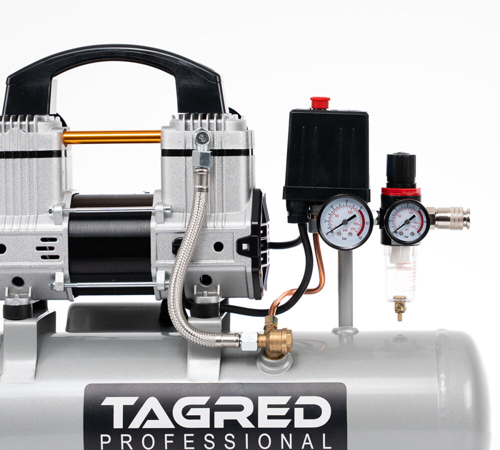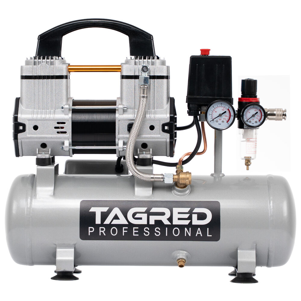 Cultură de muncă ridicată, siguranță și confort - comoditate și simplitate în utilizare sunt doar câteva dintre avantajele celei mai noi game de compresoare fără ulei TAGRED STEALTH SERIES! Compresoarele TAGRED fără ulei sunt necesare oriunde aerul comprimat trebuie să fie lipsit de contaminare cu ulei. Sunt ideale pentru suflarea prin circuite integrate sau electronice. Compresoarele noastre sunt semnificativ mai silențioase , mai mici și mai ușoare, ceea ce le face mai portabile decât compresoarele tradiționale lubrifiate cu ulei. Un compresor silențios fără ulei – o sursă profesională de aer curat, fără ulei. Această pompă fiabilă și silențioasă poate fi amplasată cu ușurință într-un birou, într-un studiu sau lângă o mașină, fără a exacerba disconfortul cauzat de funcționarea zgomotoasă.