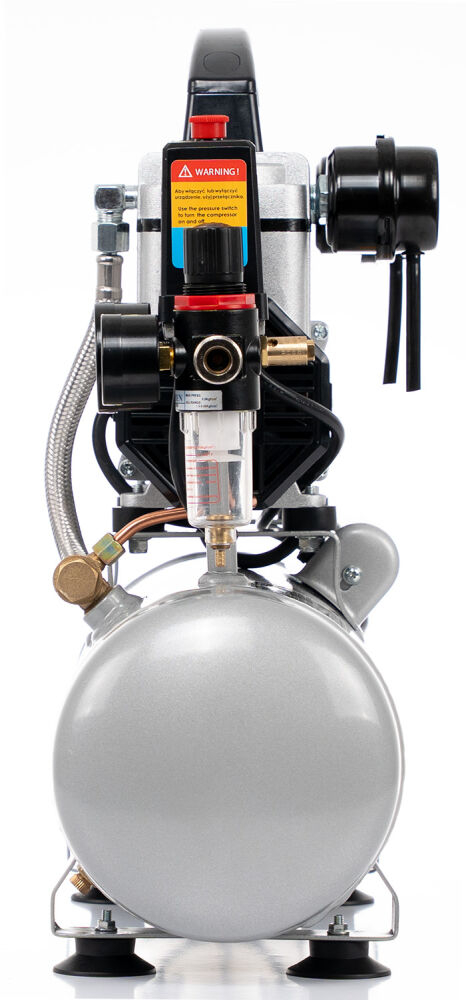 Datorită designului său ușor și a mânerului metalic durabil cu finisaj antiderapant , compresorul este ușor de transportat. Picioarele de cauciuc împiedică alunecarea dispozitivului în timpul funcționării.