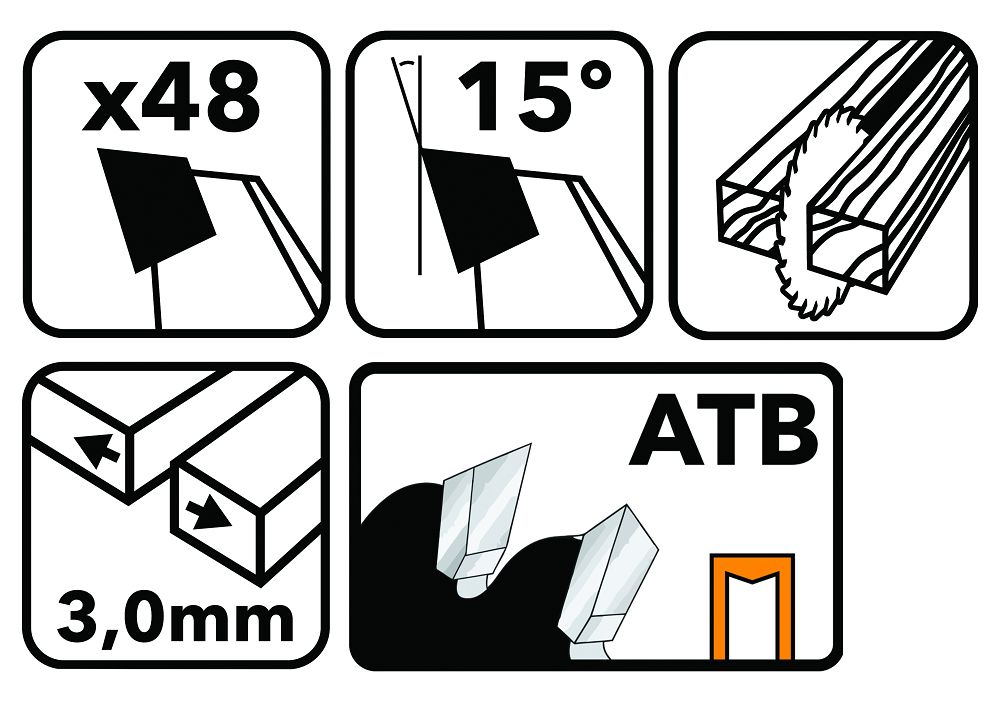 Lama durabilă din oțel călit conține 48 de dinți tăietori. Conceput pentru utilizare cu ferăstraie circulare de masă și ferăstraie cu mitră. Lama POWERMAT este concepută pentru tăierea lemnului, a tuturor materialelor asemănătoare lemnului, inclusiv placaj, scânduri, scânduri, trunchiuri de copaci și crengi, precum și a materialelor moi. Este concepută pentru viteze de rotație foarte mari, asigurând o tăiere rapidă și ușoară. Are o lamă standard pentru ferăstraie circulare și ferăstraie circulare. Diametrul exterior al lamei este de 305 mm. Gaura de montare este de 30 mm.