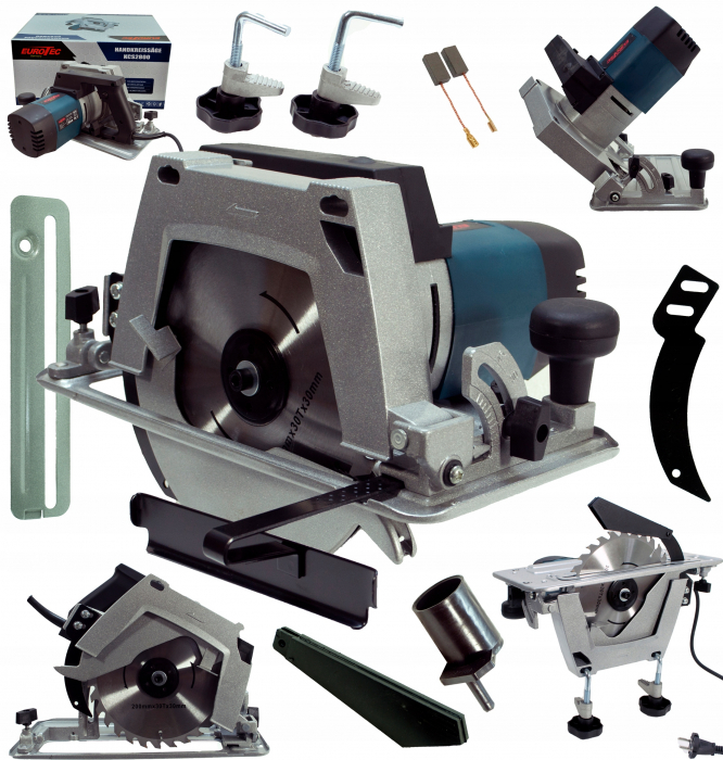 Tensiune: 230V / 50Hz Putere maxima: 2800 W Turatii: 4700 rpm Adâncime de tăiere: reglabilă până la 64 mm Reglarea unghiului de tăiere: 0 - 45° Reglarea înălțimii de tăiere: da Posibilitate de montare pe masa/blat: da Scut: 200mmx30Tx30mm · Moc max. 2700W · Reglarea adâncimii și unghiului de înclinare · Dispozitiv 2 în 1 - ca un ferăstrău de mână clasic și posibilitatea de a monta ferăstrăul pe o masă folosind menghinele incluse în set. Un ferăstrău circular puternic și solid pentru lemn care poate fi folosit ca ferăstrău de masă. Poate fi folosit pentru tăierea lemnului, a panourilor și a diferitelor tipuri de scânduri de mobilier. Ferăstrăul este echipat cu un disc mare cu diametrul de 200 mm și un ghidaj paralel extrem de util.
