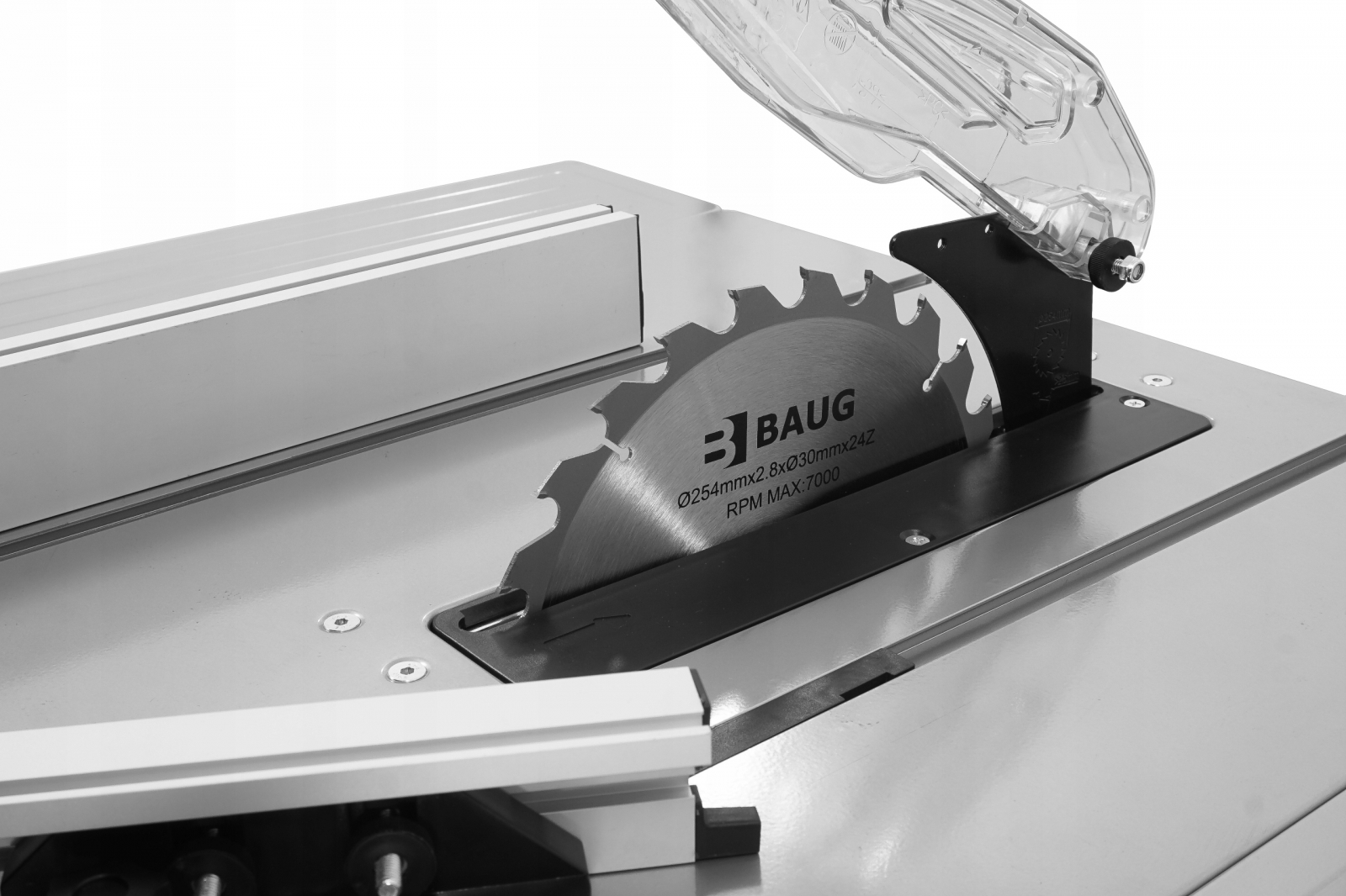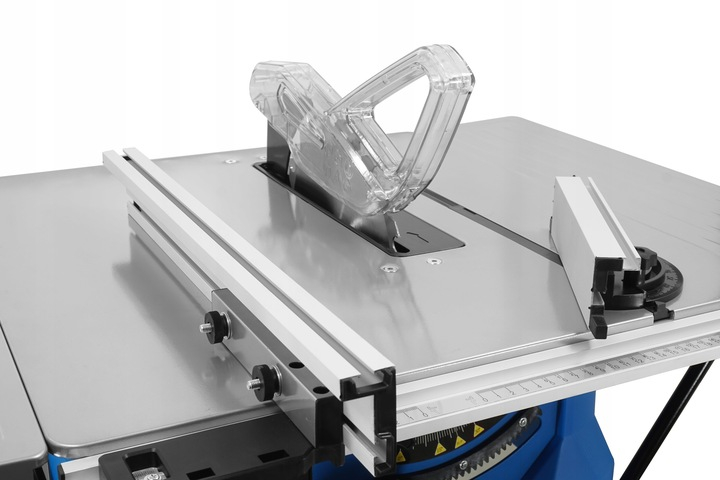 Un ferăstrău de masă conceput pentru tăierea lemnului, a materialelor pe bază de lemn și a materialelor plastice. Permite tăierea la un unghi de 90° precum și tăierea la un unghi de 45°. Puterea mare a motorului de 2600 W vă permite să faceți tăieri foarte precise. Vă permite să: tăiați elemente din lemn; tăiere longitudinală și transversală. Lama de carbură din oțel călit de 254 mm asigură tăierea atât a lemnului tare, cât și a lemnului moale. Datorită ghidajului lateral, este posibilă tăierea plăcilor la lățimea dorită. Este posibil să măriți suprafața mesei atât pe partea dreaptă cât și pe partea stângă a mesei. Butonul de reglare a înălțimii cadranului vă permite să setați înălțimea optimă.