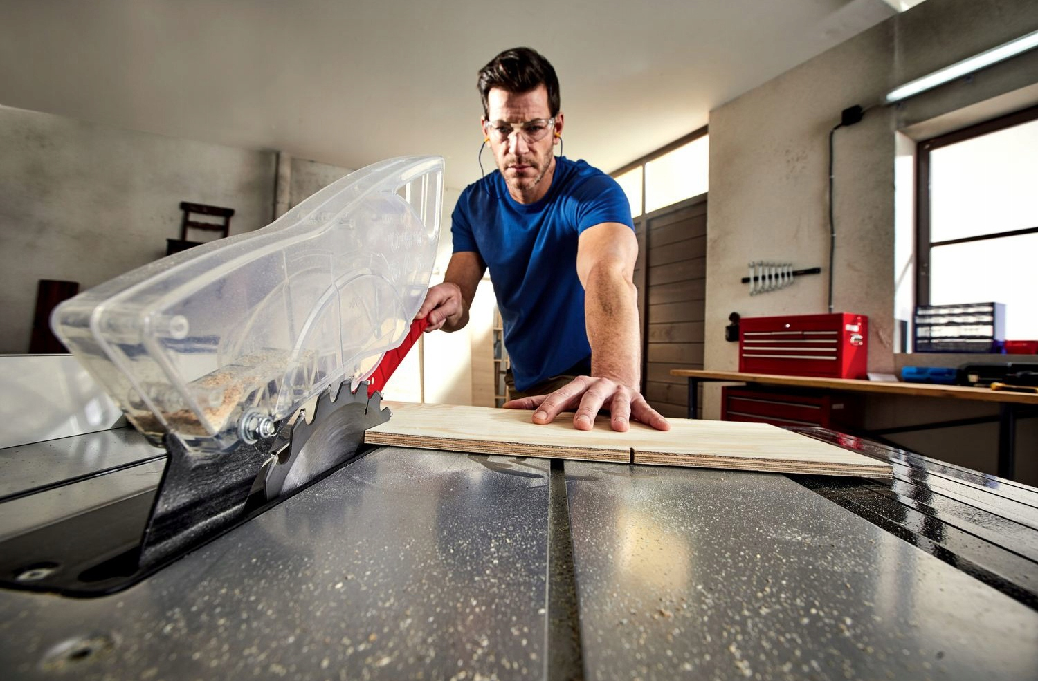 Datorită ghidajului lateral, este posibilă tăierea plăcilor la lățimea dorită.
