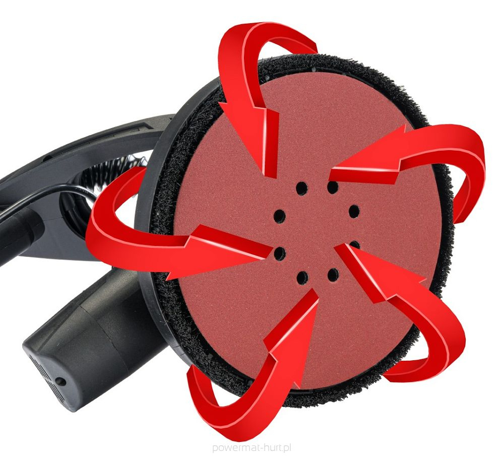 Găurile din placă și spațiul dintre placă și capacul plăcii sunt folosite pentru a îndepărta praful. Polizorul este, de asemenea, echipat cu un furtun pentru îndepărtarea prafului generat în timpul șlefuirii, acest furtun trebuie conectat la un aspirator industrial sau la un sac.