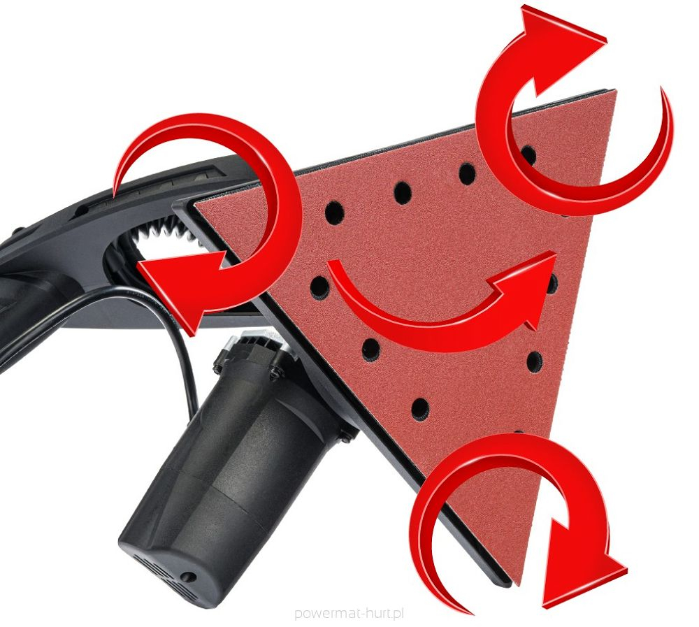 Folosind o clemă (fără unelte), puteți scoate și înlocui discul dintr-unul rotund în unul triunghiular, care este perfect pentru șlefuirea colțurilor cu o mișcare oscilantă.