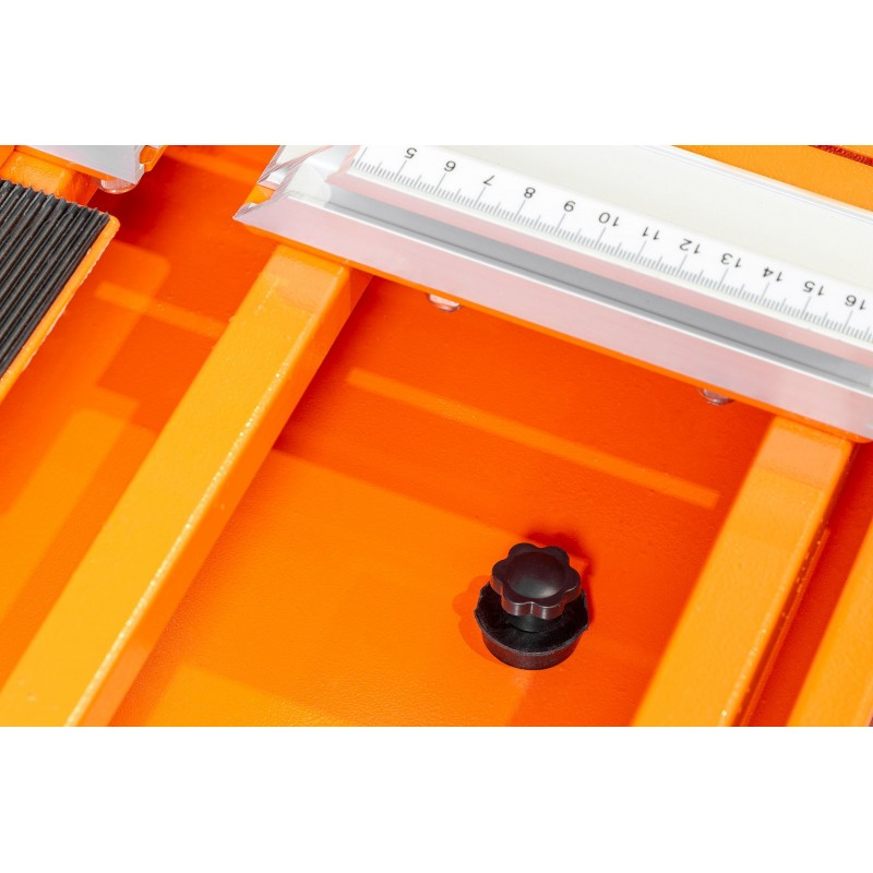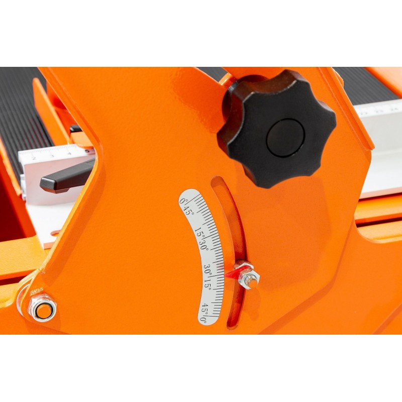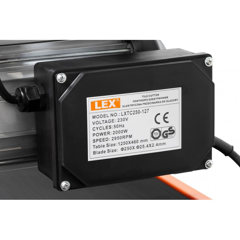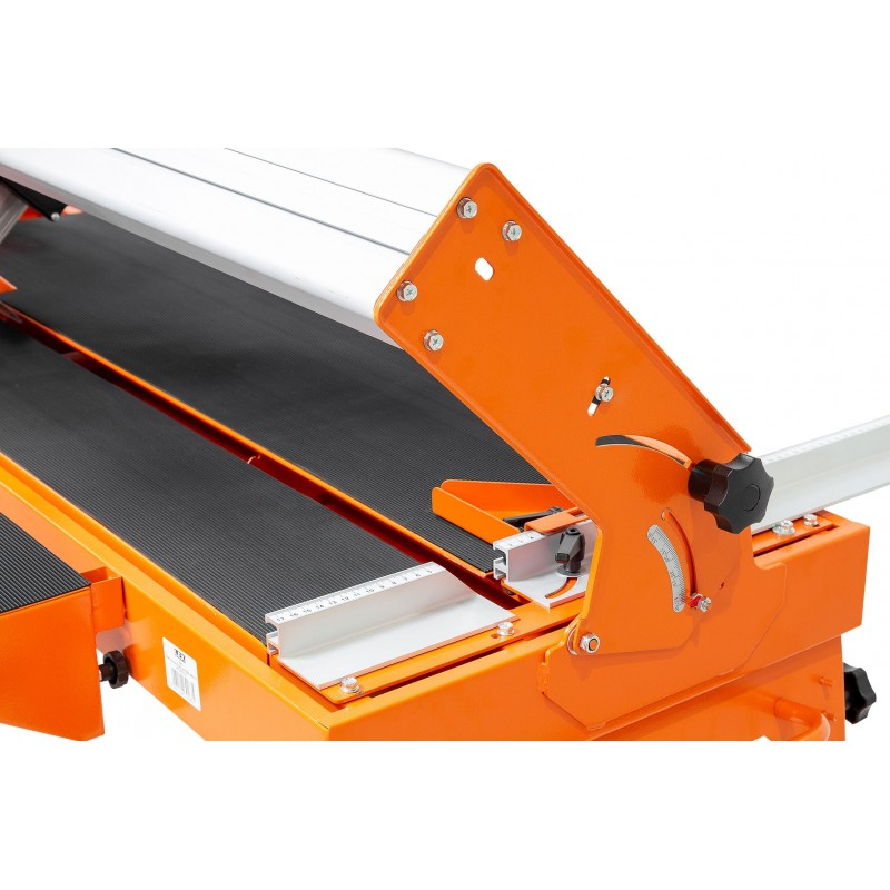 CALITATE NOUĂ - manoperă solidă, materiale durabile, construcție fiabilă! Cutter de masă LXTC250-127: · tăiere uscată/umedă · lamă mare de 250 mm · lungime maxima de taiere 1270mm · reglarea unghiului de tăiere 0-45 grade · motor puternic cu inducție · Blaturi antiderapante · pompă automată de apă · litiera cu apă · dop de scurgere pentru drenaj · Agenți de protecție · Instrumente pentru măsurare și tăiere ușoară · construcție puternică și stabilă Cutterul de masă LXTC250-127 este un dispozitiv extrem de convenabil și precis pentru tăierea plăcilor, plăcilor, gresului, pietrei și a multor alte materiale. Ideal pentru companiile de construcții care se ocupă cu finisaje interioare etc. Dimensiunea și designul dispozitivului permit o muncă ergonomică chiar și cu elemente de dimensiuni mari. Structura tăietorului este realizată în întregime din oțel acoperit cu un strat de protecție în portocaliu. Ghidajul superior este fabricat din aluminiu, ceea ce îl face ușor, durabil și rezistent la uzură. Un motor puternic cu inducție și un disc mare fac tăietorul să facă față chiar și celor mai exigente materiale. Căruciorul pe care sunt amplasate motorul electric și discul a fost atașat cu 4 rulmenți independenți. Această soluție garantează mișcarea lină a lamei peste masă și fiabilitate ridicată. Cutterul are o înclinare reglabilă și reglarea unghiului de înclinare de la 0 la 45 de grade. Discul cu diametrul de 250mm a fost fixat cu un capac metalic. O pompă automată și conductele de apă protejate corespunzător umezesc lama în timpul tăierii, ceea ce îmbunătățește calitatea tăierii și previne praful excesiv. Un dop de scurgere ușor accesibil permite scurgerea rapidă a apei din cuvă. Blaturile mesei de lucru antiderapante împiedică mișcarea materialelor setate și sporesc precizia tăierii. Setarea corectă a materialului și tăierea precisă sunt facilitate de instrumentele de măsurare incluse.