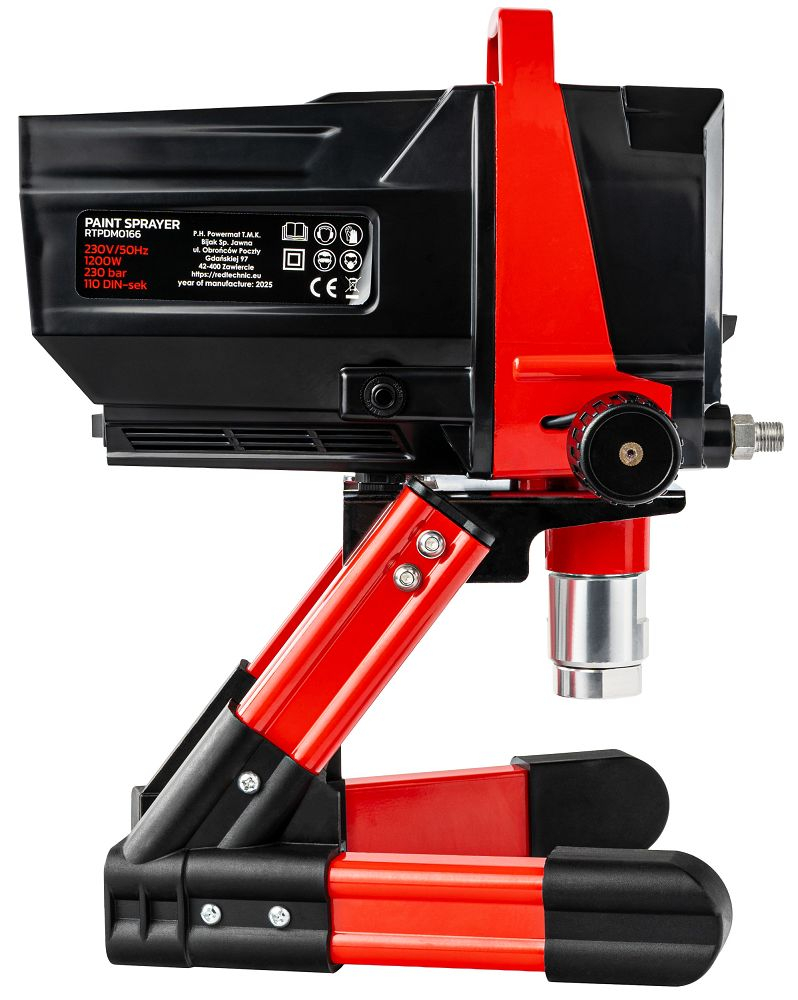 Model: RTPDM0166 Acest pulverizator de vopsea de 1200 W și 230 bar vă permite să vopsiți rapid și uniform suprafețe mari - pereți, fațade, tavane și podele. Veți beneficia de o eficiență ridicată de 1,7 l/min, un consum redus de vopsea și un control precis al pulverizării datorită reglării presiunii și a unui sistem de filtrare.