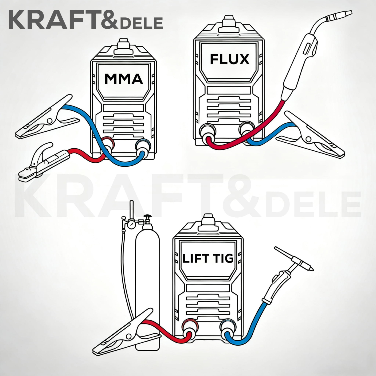 KD3432 funcționează la o tensiune standard de 230V/50Hz, oferind un curent de ieșire de până la 210A și o tensiune în circuit deschis de 58V. Acceptă electrozi cu un diametru de 1,6–4,0 mm și sârmă de sudură cu un diametru de 0,8 sau 1 mm. Dispozitivul are o eficiență de 60%, iar izolația de clasa F și protecția IP21S asigură o funcționare sigură și fiabilă.