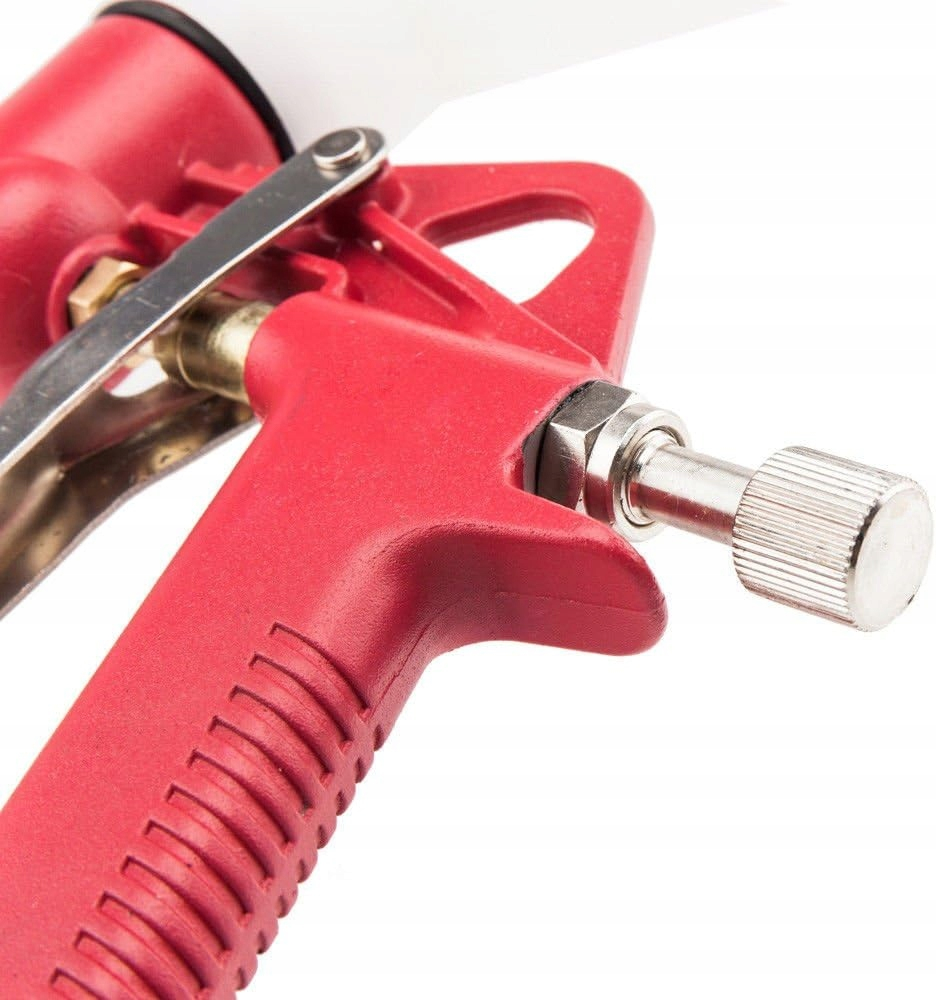 | Parametri: • Racord aer: 1/4" • Presiune: 2-4 atm • Consum aer: 100-250L/min • Capacitate rezervor: 5L • Duze interschimbabile: 4, 6, 8 mm • Reglare lină a fluxului de aer |