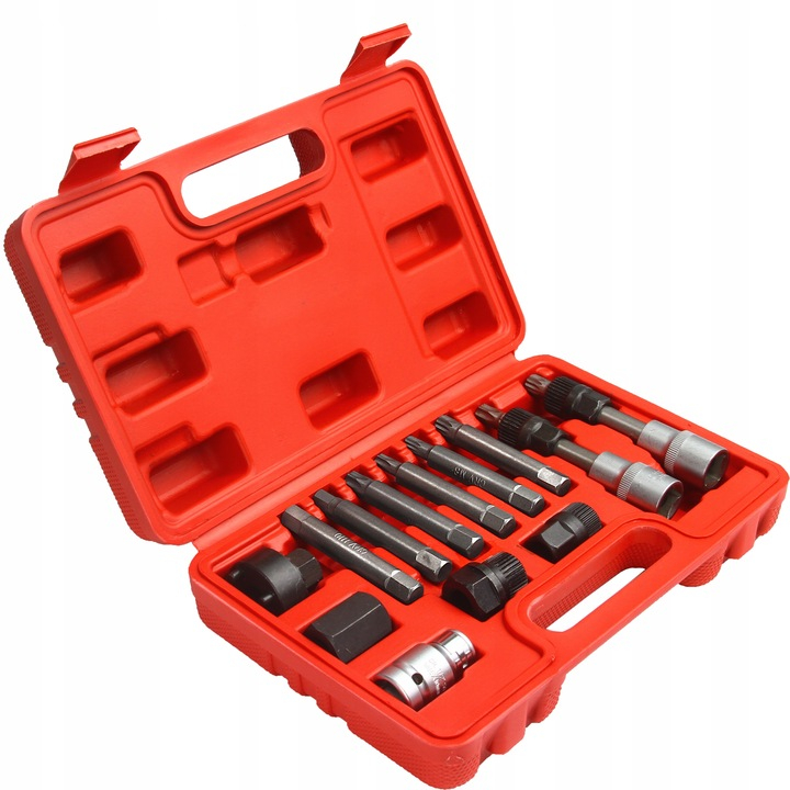 COMPOZIȚIA SETULUI: · Torx T50 cheie glisantă 33 dinti · Cheie spline (XZN) M10 mandrel cu cheie glisantă 33 dinți · 75 mm 6 puncte bit - Torx T40 · 75 mm 6 puncte bit - Torx T50 · Bit de 75 mm în 6 puncte - SPLINE (XZM) M8 · Bit de 75 mm în 6 puncte - SPLINE (XZM) M10 · 75 mm 6 puncte bit - 8 mm HEX · 75 mm 6 puncte bit - 10 mm HEX · Priza atelata 6 puncte 15 mm x 33 dinti · Priza atelata 6 puncte 22 mm x 33 dinti · Capac Mandrel 6 puncte 17 mm x 4 pini · Priză 6 puncte 22 mm · Adaptor pentru biți de 1/2" x 10 mm