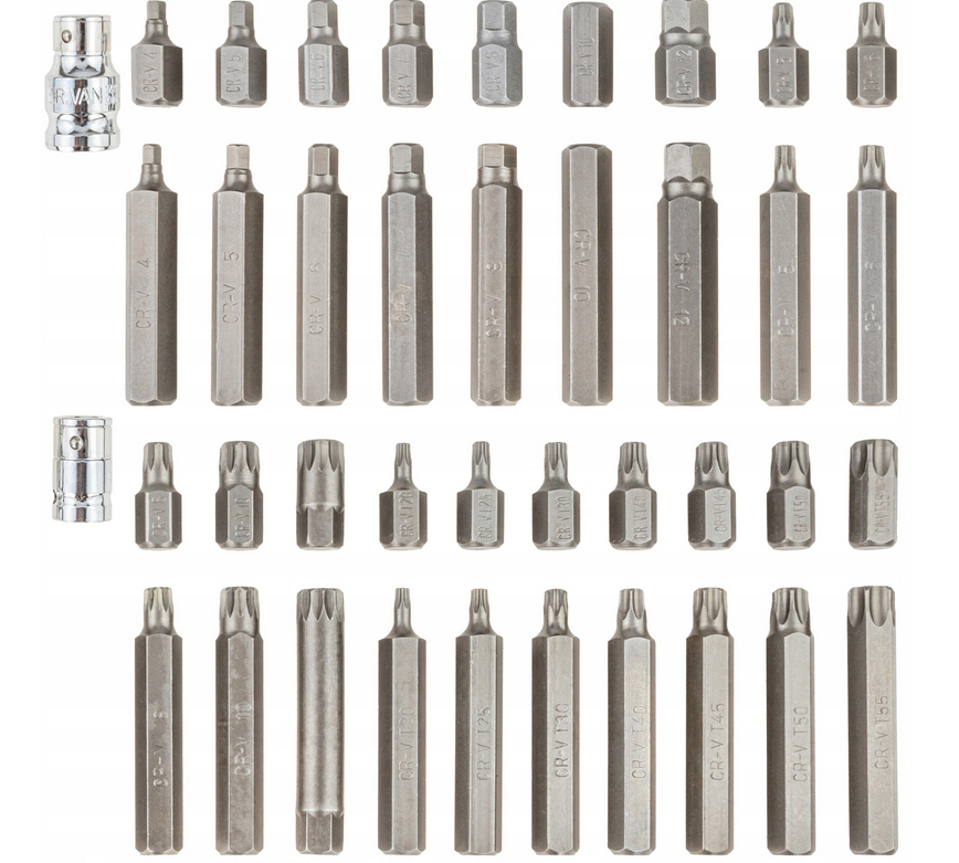 Un set profesional de biți într-o carcasă de plastic pentru deșurubarea șuruburilor speciale, cum ar fi hex, torx, spline. Varietatea de biți vă permite să efectuați multe lucrări în servicii mecanice și auto specializate. Biți din oțel crom-vanadiu, care garantează durabilitate și fiabilitate ridicate. Setul este ambalat într-o cutie metalică practică pentru transport și depozitare. COMPOZIȚIA SETului: