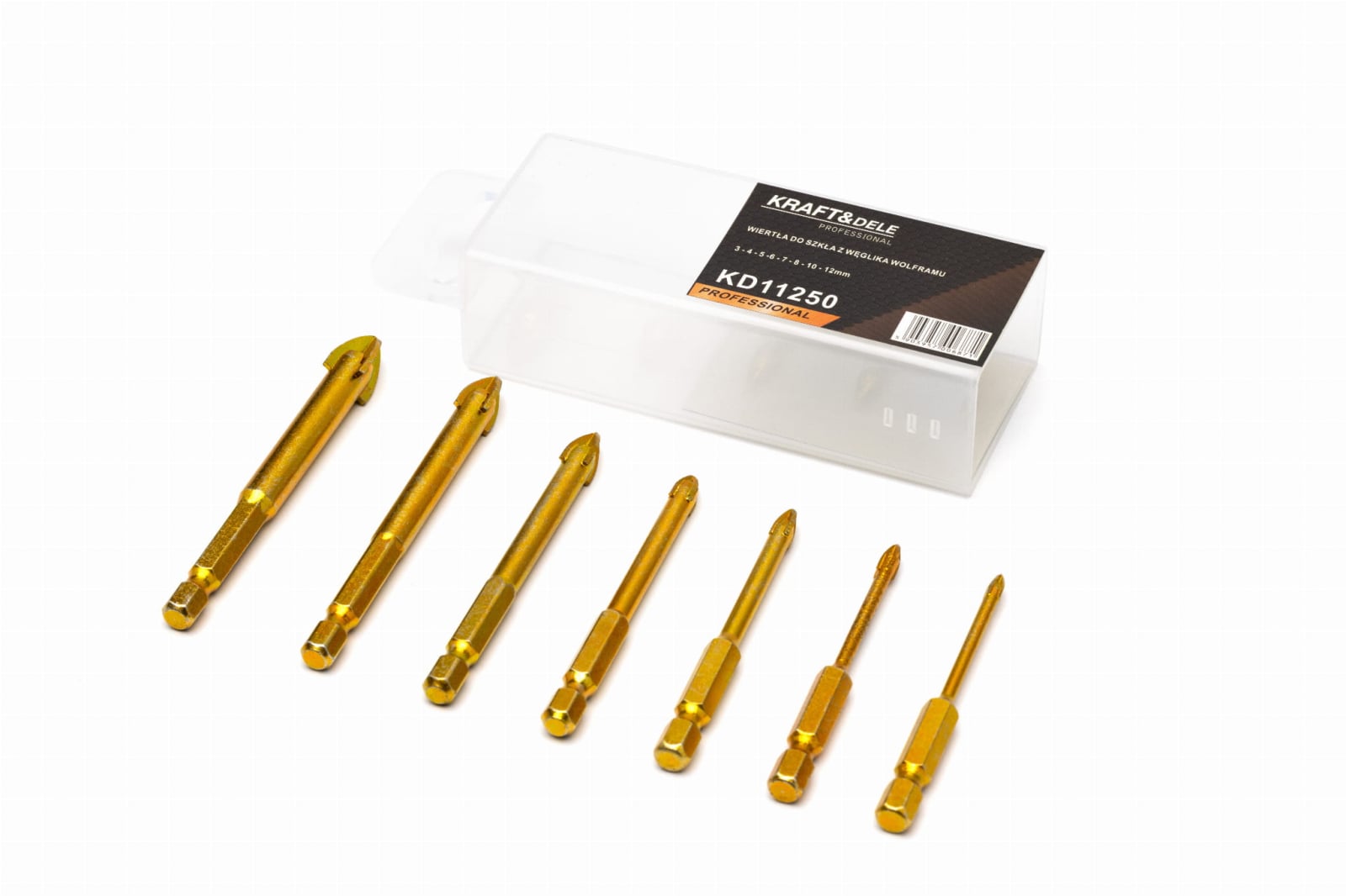 Un set de burghie multifuncționale pentru sticlă, concepute pentru găurire fără impact în lemn, plastic, aluminiu, cărămidă, sticlă și ceramică. Burghiele Kraft & Dele KD11250
