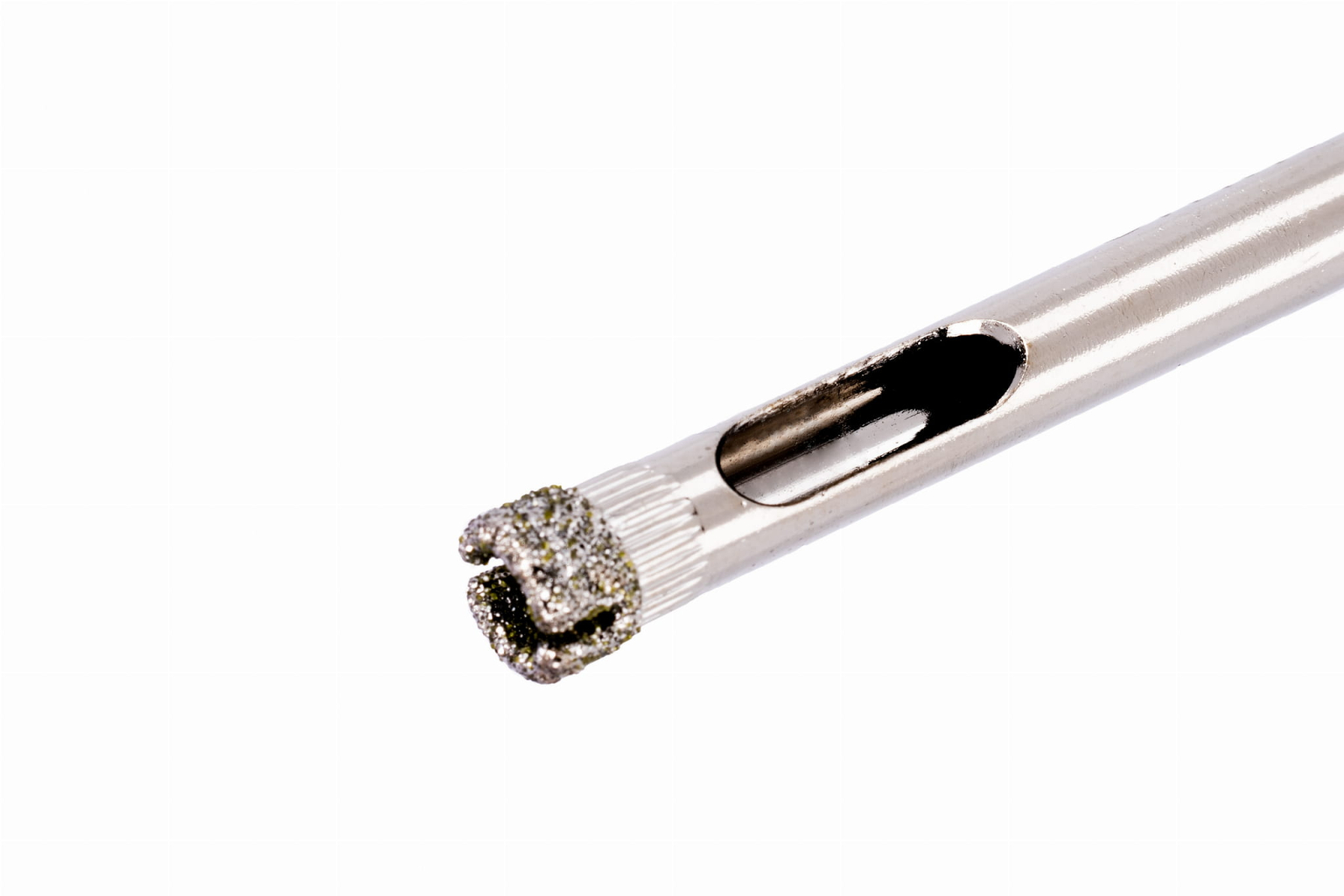 Burghiul este fabricat din oțel carbon de înaltă calitate, iar partea de lucru este un strat de diamant foarte fin și dens, lipit în vid pe un corp cilindric din oțel. SPECIFICATII TEHNICE: