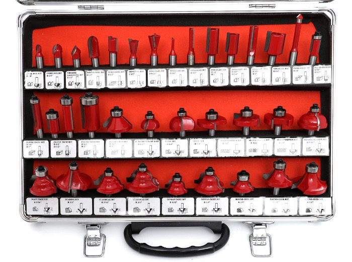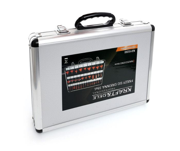 Cele 21 de freze sunt prevăzute cu rulmenți pentru reducerea frecării și o lamă din carbură de tungsten foarte dură. Setul de freze vine într -o cutie profesională, fiecare freză fiind etichetată.