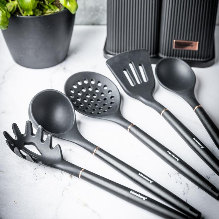 2) Set de ustensile de bucătărie antiaderente din silicon alimentar rezistent la căldură - este fabricat din silicon flexibil și moale, protejează ustensilele de bucătărie de deteriorări și zgârieturi.