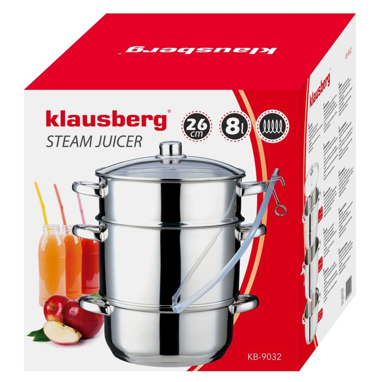 Storcătorul cu abur Klausberg de 8 litri este un aparat de bucătărie practic și funcțional, conceput pentru prepararea sucurilor naturale din fructe și legume. Fabricat din oțel inoxidabil de înaltă calitate, asigură durabilitate, rezistență la coroziune și ușurință în utilizare atât în bucătăria de acasă, cât și la prepararea unor cantități mai mari de conserve. Metoda cu abur extrage ușor sucul din fructe, fără a fi nevoie de conservanți sau zahăr adăugat. Acest lucru vă permite să preparați sucuri naturale, aromate, care păstrează aroma și valoarea nutritivă a fructului. Caracteristicile produsului