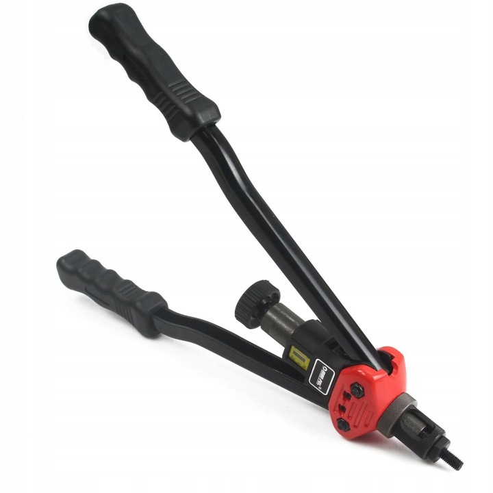 Nitter de mână pentru nuci de nit M3-M12 de la VERKE. Mașină de nituire proiectată pentru a face îmbinări de materiale folosind piulițe de nit. Se face îmbinări de materiale folosind un manșon filetat intern. Acest lucru vă permite să înșurubați elemente suplimentare cu șuruburi la metal sau șuruburi. Fabricat din oțel durabil crom-molibden instrument CrMo. Mânere acoperite cu căptușeală cauciucată antiderapantă. Întregul într-o valiză confortabilă, practică. Setul include: