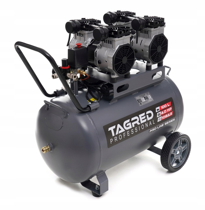 NOU v. 2024, - Compresor fără ulei cu patru pistoane, compresor 100L marca poloneză TAGRED 2x2000W = 4000W! R4 (2 pompe cu 2 pistoane pe rând)