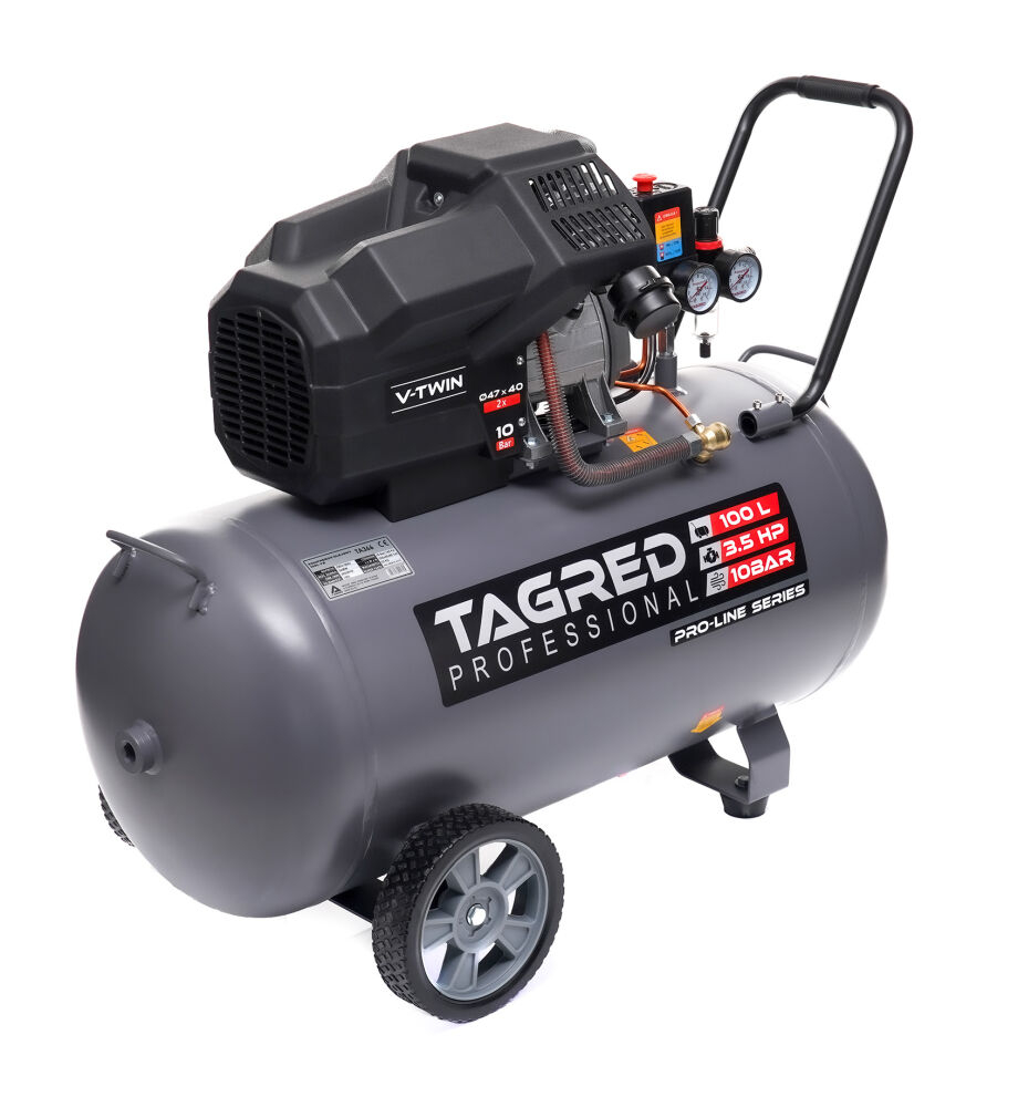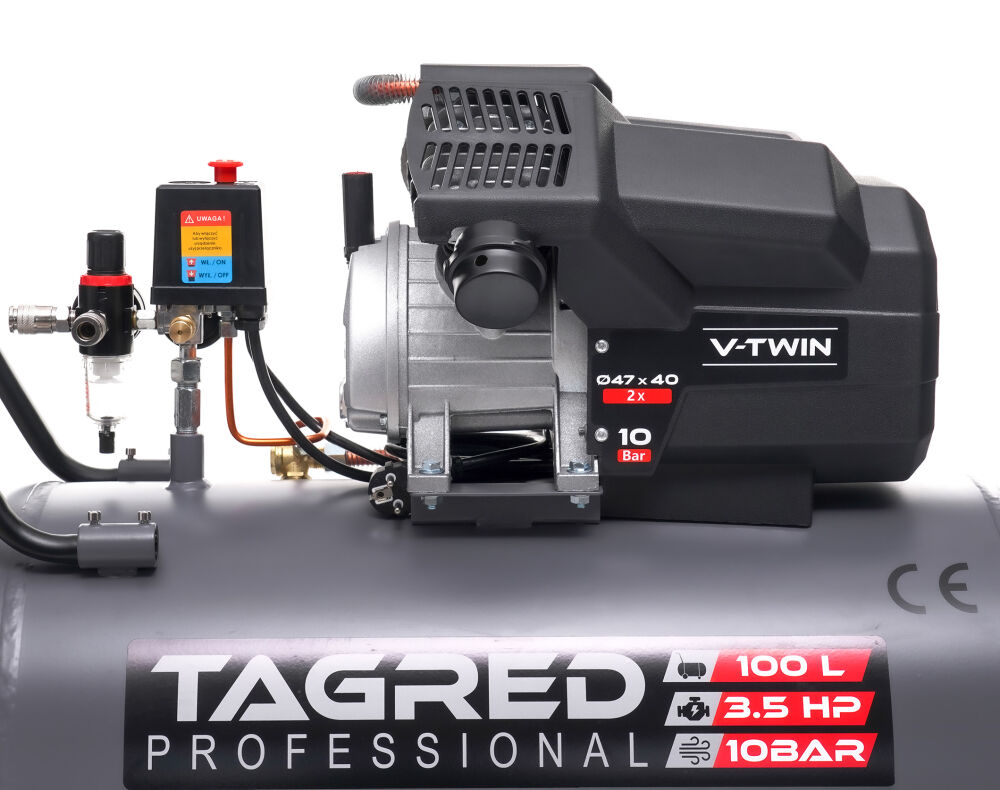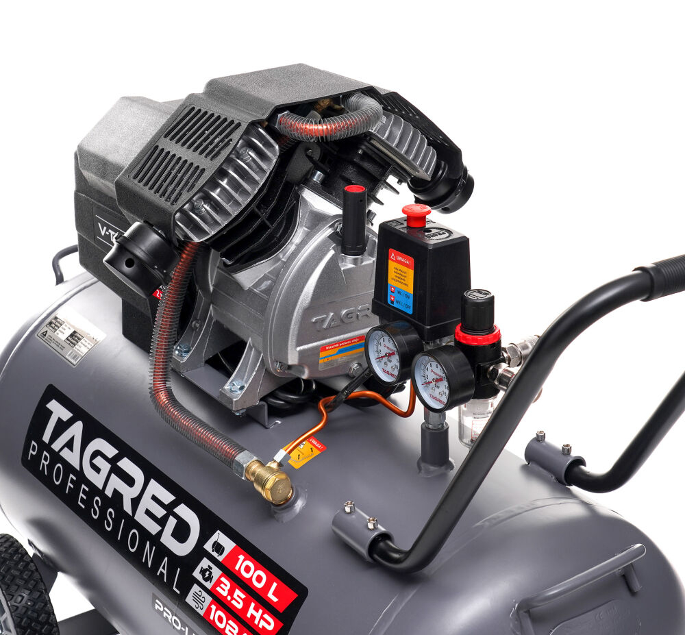 Compresor de ulei 100L marca poloneza TAGRED Compresorul TAGRED este un dispozitiv solid și eficient , conceput pentru umplerea rapidă a rezervorului, motor puternic și funcționare silențioasă . Datorită funcționării sale intuitive și asamblarii ușoare, este potrivită atât pentru uz casnic, cât și în atelier. Manopera estetica si durabila asigura fiabilitate si confort de utilizare multi ani! Date tehnice: