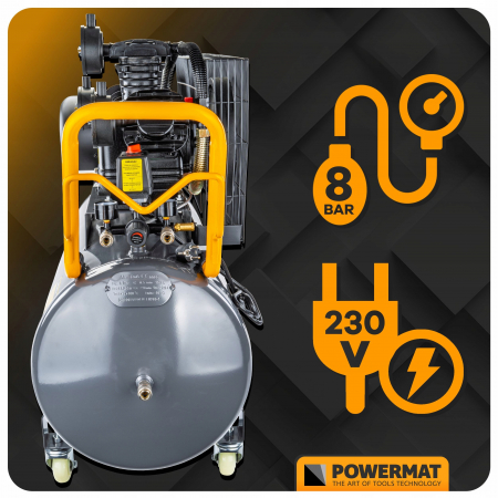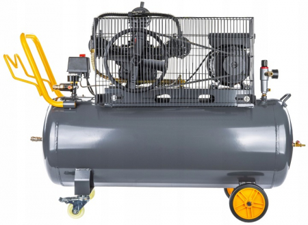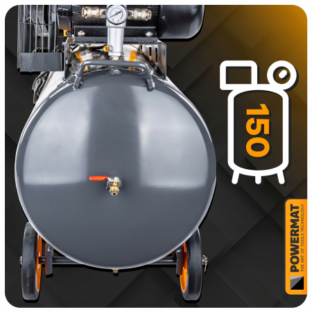 EFICIENŢĂ Compresorul atinge o presiune de 8 bari datorita compresorului, oferind o capacitate de 650 l/min. FIABILITATE Motorul de 4 CP nominali, 5.6CP maxim cu economie de energie garanteaza o eficienta ridicata cu un consum minim de energie, ceea ce se traduce printr-o durata de viata lunga a dispozitivului. VERSATILITATE Aparatul este perfect pentru vopsire, suflare, pompare și curățare, oferind o gamă largă de aplicații. PRECIZIE Compresorul are cinci ieșiri cu conectori rapidi EURO, dintre care patru sunt echipate cu reglare a presiunii, care permite reglarea precisă a parametrilor de funcționare. SECURITATE Presostatorul automat se activează la o presiune de 8 bari, iar supapa de siguranță protejează împotriva creșterii necontrolate a presiunii în rezervor. CALITATEA CONSTRUCTII Rezervorul galvanizat, protejat împotriva coroziunii, are o supapă de scurgere pentru scurgerea apei acumulate, ceea ce îi mărește durabilitatea. MOBILITATE Compresorul este ușor de mutat datorită roților pivotante și mânerului de transport convenabil. EFICIENTA MARE Compresorul generează o presiune de 8 bar în rezervor și o capacitate efectivă de 650 l/min. Compresorul este antrenat de un motor electric de 3 kW nominali, 4.1kw maxim, care economisește energie . MANOPERĂ Rezervorul compresorului este galvanizat pe interior și pe exterior. Cilindrul este echipat cu o supapă de scurgere care vă permite să scurgeți apa acumulată, ceea ce o protejează împotriva coroziunii. SIGURANȚA UTILIZĂRII Presostatul este setat la o presiune maximă de 8 bari , când presiunea din rezervor atinge această valoare, compresorul se oprește și este pornit din nou când presiunea din rezervor scade sub 6 bari. Siguranța în cazul unei defecțiuni/blocare a presostatului este asigurată de o supapă de siguranță certificată. Care se va acționa atunci când presiunea din rezervor depășește o valoare sigură, eliberând excesul acolo unde este necesar. REGULATOR DE PRESIUNE Aparatul are 5 iesiri pe conectori rapidi standardizati european "EURO", patru dintre iesiri sunt reglate cu ajutorul unui reductor integrat, arata presiunea de lucru asupra manometrului. FURUN PNEUMATIC INCLUS Este excepțional de rezistent la ulei , ceea ce o face o soluție versatilă și durabilă. Datorită utilizării materialului flexibil din cauciuc PVC, furtunul este foarte flexibil , ceea ce reduce la minimum riscul de încurcare. Conectorii rapidi accelerează instalarea - este suficientă doar o mișcare ușoară pentru a conecta cablul. Lungimea de 15 metri asigură libertatea de mișcare în timpul lucrului, iar materialele de înaltă calitate folosite la producerea furtunului sporesc confortul de utilizare și durabilitatea acestuia, făcându-l un echipament de încredere.